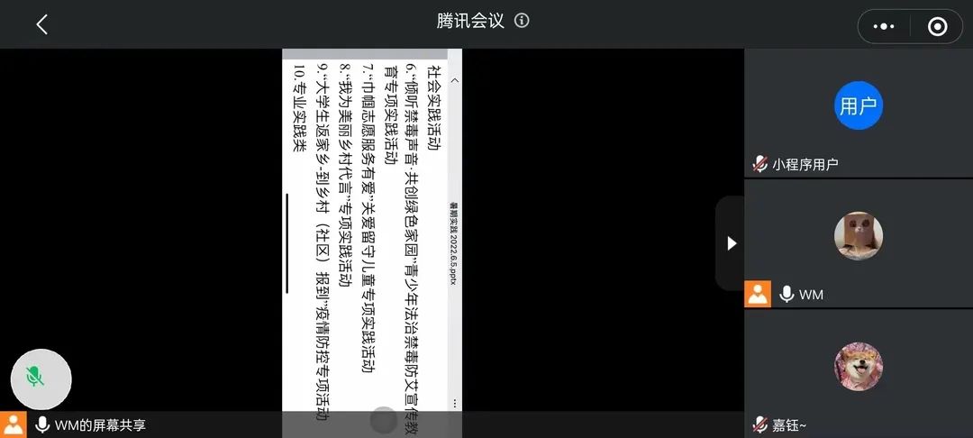 首先是“雏萤逐梦”志愿服务队负责人吕雪倩进行分享,接下来是“焰火青年”社会实践队负责人李顺风做分享,讲述了他们三下乡时期的经历和感悟,使人感触很深刻。