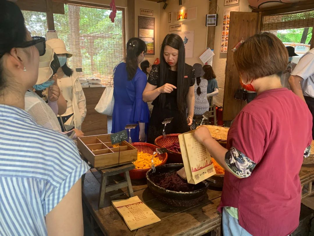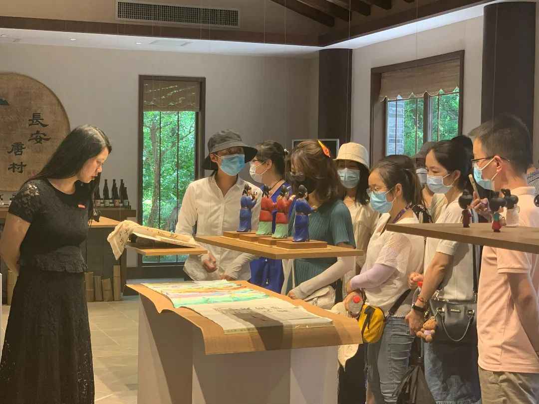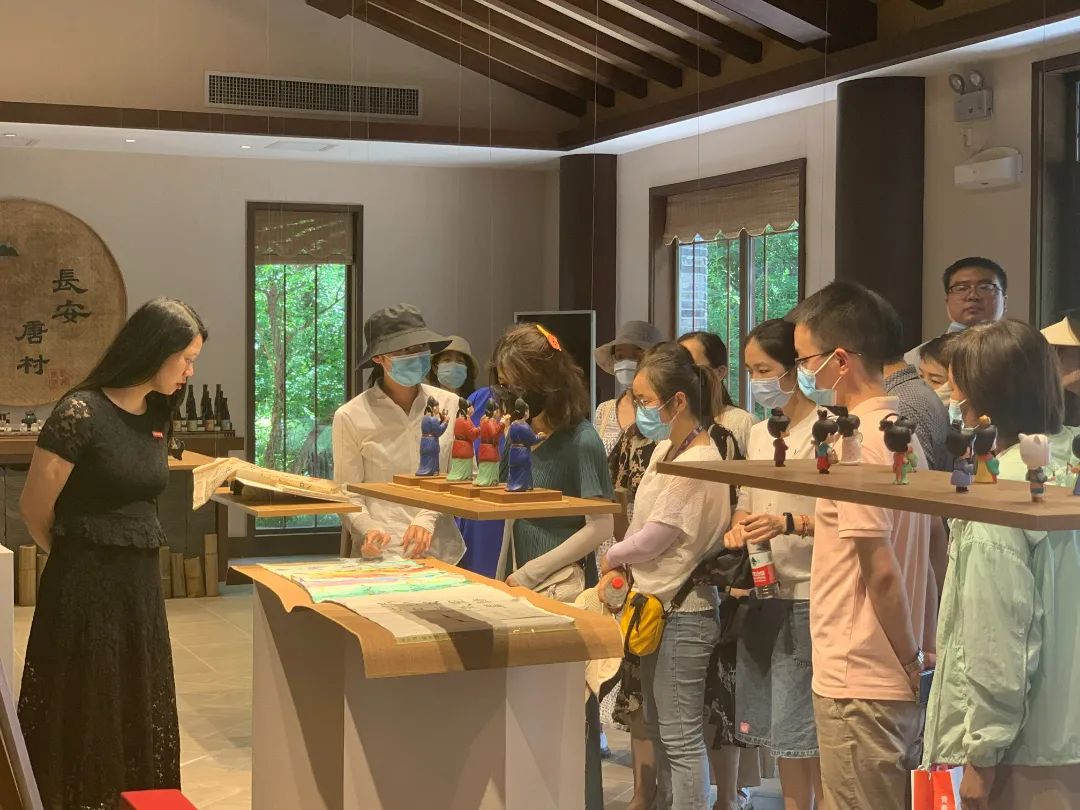 接着来到了唐村展厅,⾥⾯展示了唐村特色文创产品,他们有个统一的名字 “唐小牧”, 在展厅中比较吸引人的展品当属“桂花球”大米,这正是柳⻘《创业史》中梁生宝千⾥跋涉给乡亲们带回来的水稻品种,此外还有老油坊榨油豆子酒水等具有唐文化和乡村特⾊的展品唐村民居现在变成了民宿和商铺贴合乡村生活和唐文化与周围环境融为⼀体,游客可以在商铺喝茶吃红薯,除此以外,还有⼀些汉服商店供游客拍照。