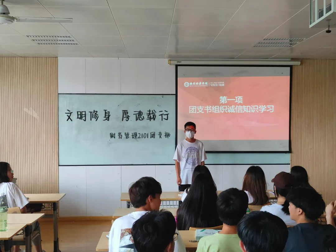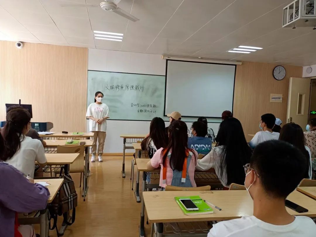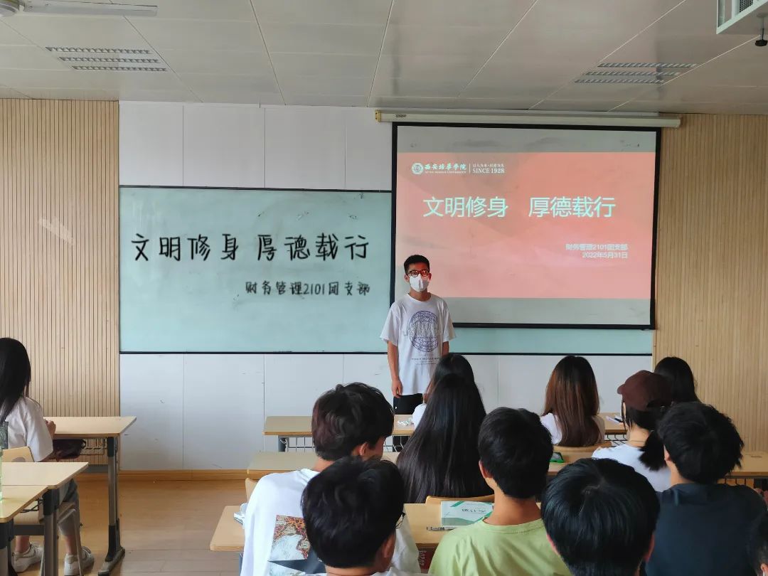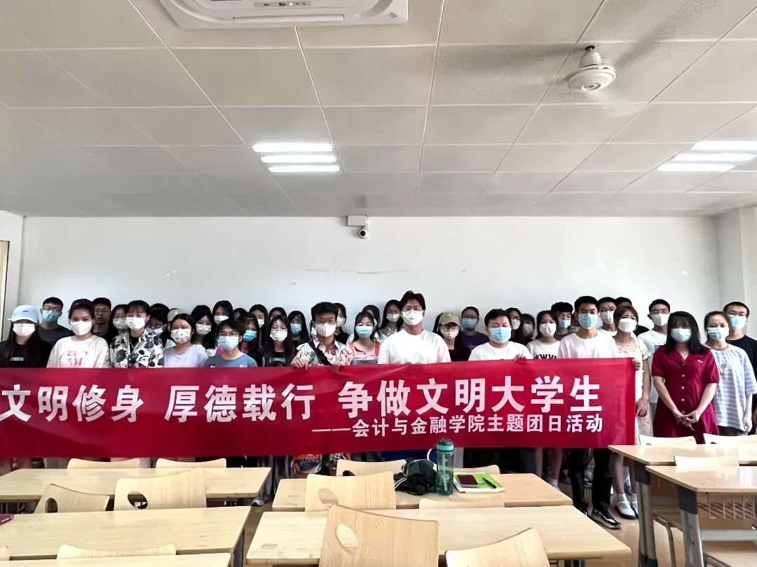 学风建设,是校风和校园文化建设的重要内容。为进一步丰富大学生的课余文化生活和活跃校园文化气氛,努力推进我校各班级各方面的建设和发展,聚力打造环境优雅、学风浓厚、班风向上、和谐稳定的班级文化。以此为契机,结合实际情况和具体特点,紧扣校园建设的核心灵魂,会计学2101班、会计学2102班、财务管理2101班、人力资源管理2101班等全院所有班级分别于2022年6月19日开展了“文明修身·厚德载行”主题团日活动,着力建设“优良学风”班集体为新的学年里新的共同奋斗目标。营造良好的校园文明氛围。