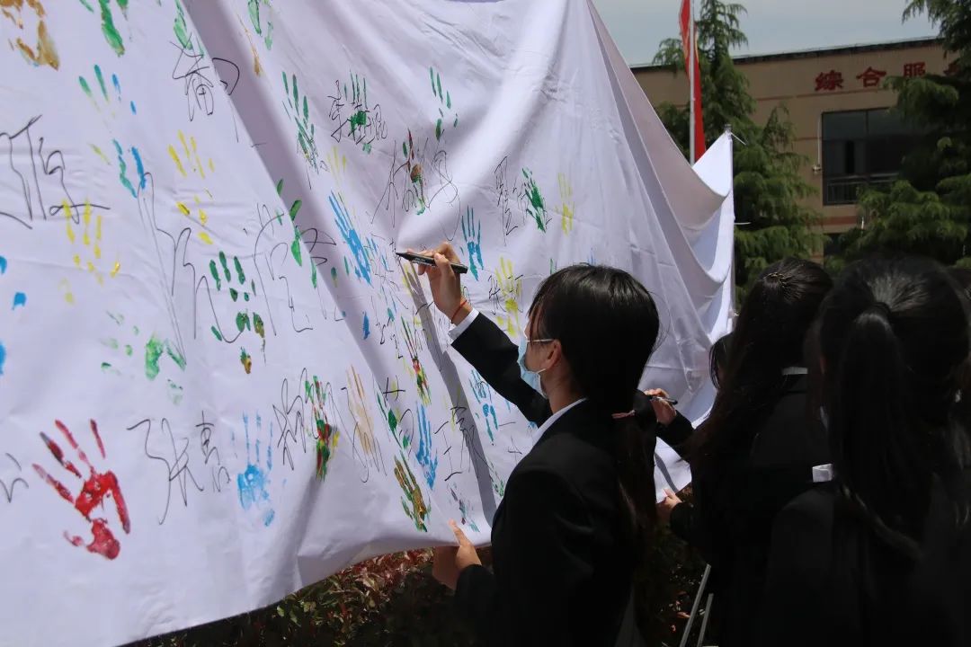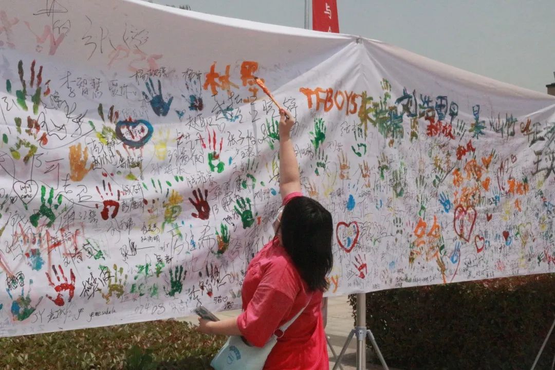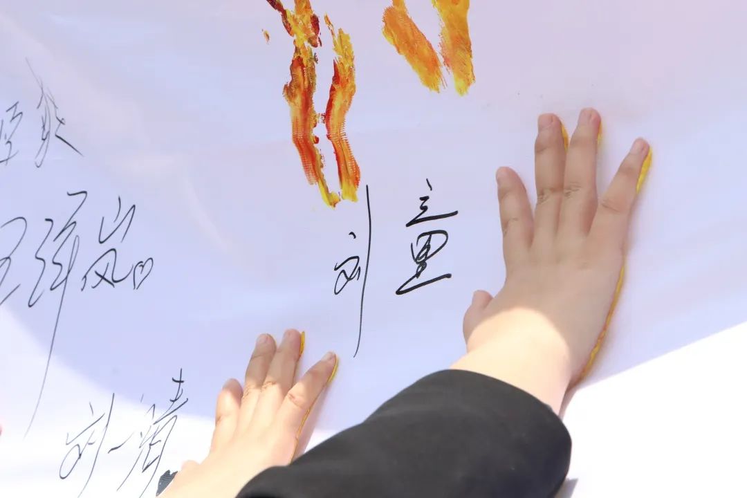 王敏老师介绍本次活动的流程:“本次活动为期两天,于5月19日举行活动开幕式进行签字仪式,鼓励学生积极参加,展现学生积极向上的精神面貌;组织学生按手印,以笔墨寄情,以作品言志,此次书画摄影展不仅为广大同学提供一个交流、展现自我的平台,同时有助于推进学院的精神文明建设。”
