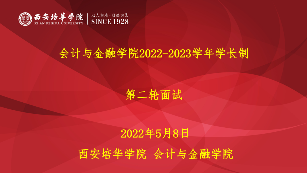 为进一步加强和提高大学生思想政治教育,更好地实施对2022级新生的指导和引导,帮助他们尽快熟悉、适应大学生活,实现“学会学习,学会做事,学会生活,学会发展”的教育目标,同时为培养高年级学生责任意识、组织能力、管理能力和协调能力,落实生本理念,促进生生互动成长,我院决定在2022年5月8日晚上19:30于博远楼2212、2214、2215、2216教室举行第二轮面试。