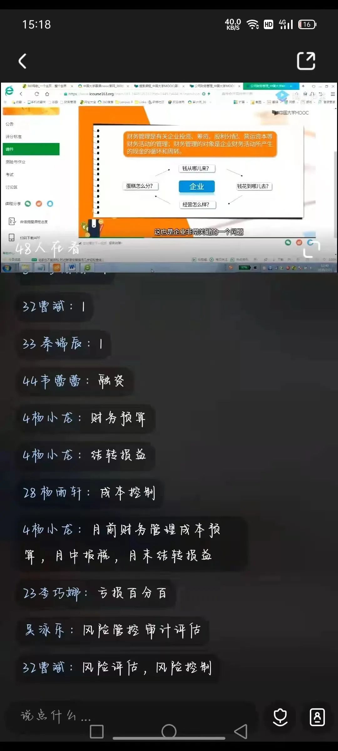 张沛源老师主讲《财务管理》课程,张老师充分利用其丰富的教学经验及人格魅力时刻调动课堂氛围,同学积极参与课堂互动讨论,实现教学中理论与实践相结合。