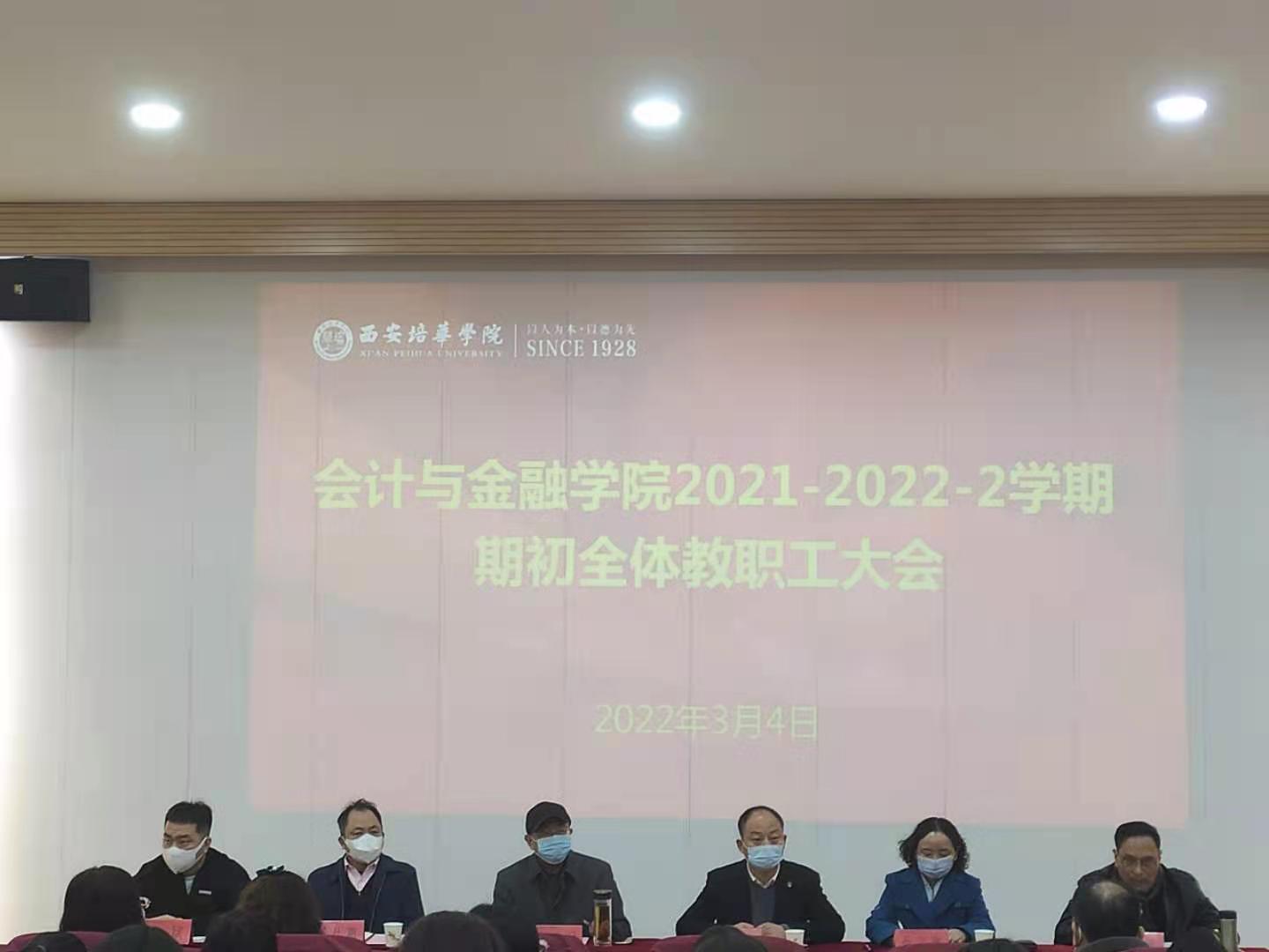 岁序更替,华章日新,新年的祝福还在耳边回荡,新学期的扉页已经展开。为了更好地开展新学期的各项工作,谋划布置2022年度西安培华学院会计与金融学院整体工作,进一步提高我院全体教职工团队的竞争力、战斗力、凝聚力,2022年3月4日我院在J201召开全体教职工大会,部署新一学期重点工作。