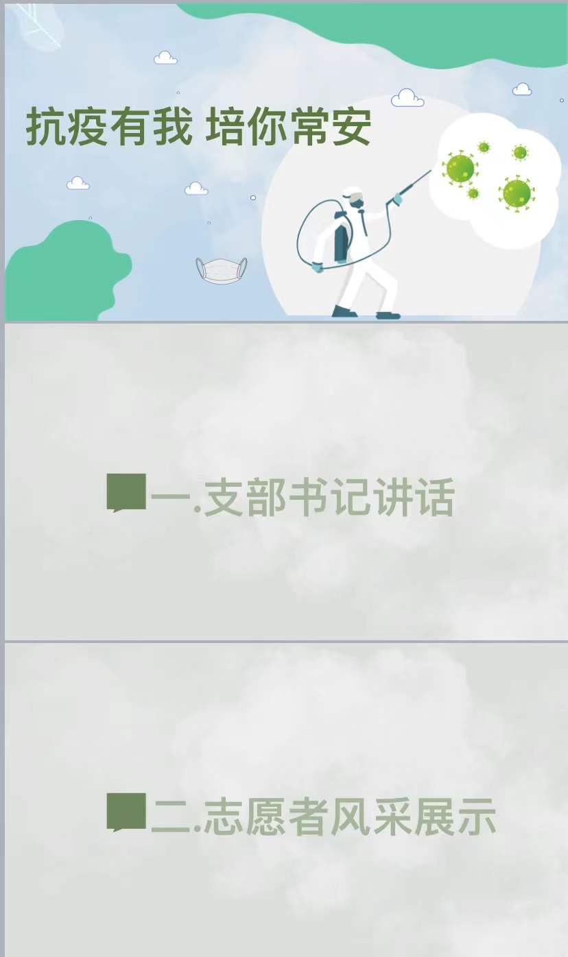 接下来,各学生党支部成员中,作为参与疫情防控志愿服务的志愿者纷纷分享自己的抗疫事迹,虽然志愿者们措辞不一但是都共同指出了疫情期间让自己感动的医护人员的故事,还谈及了个人在志愿服务期间积累到的经验,加入到暖心向上、团结一致的集体、辛勤劳苦但依旧坚持的医护人员之中,大家都一致表示要以医护人员为楷模,学习这种大无畏的无私奉献精神。