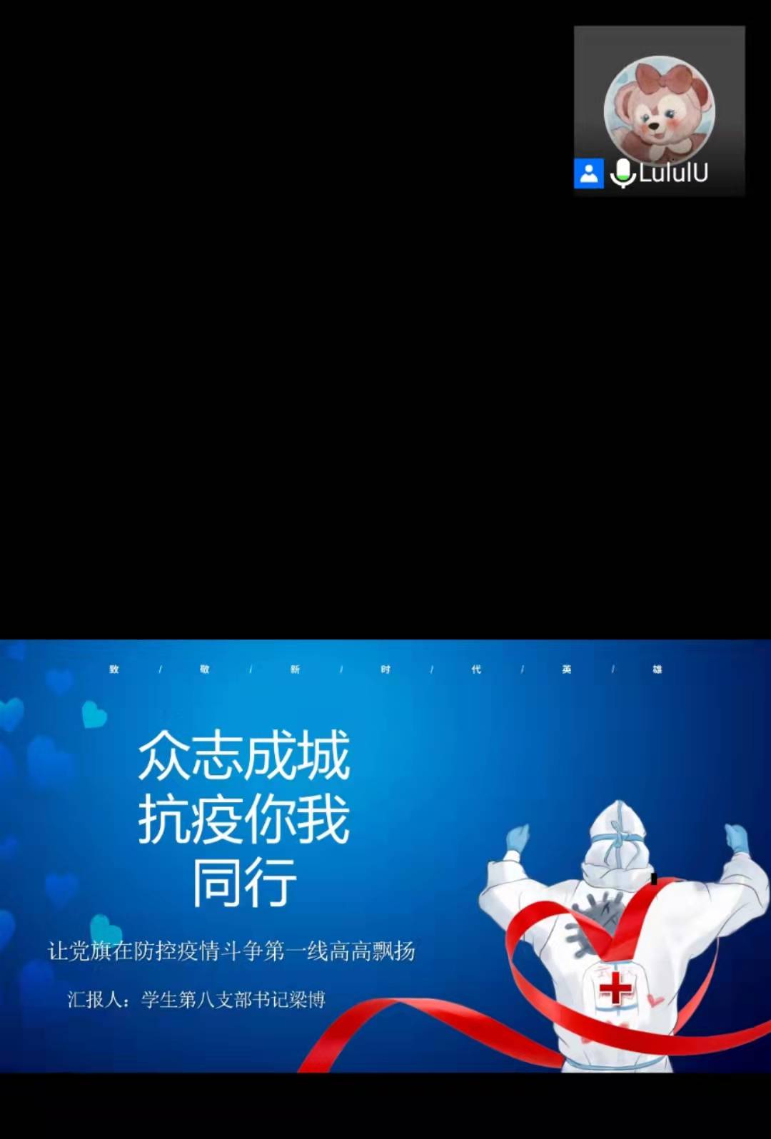 各支部纷纷以线上抗疫为主,学习分享为辅,本次活动采用线上形式围绕观看抗疫宣传视频、分享交流疫情校园生活、表彰疫情期间抗疫志愿者等话题,展现我院学生党员在抗击疫情中发挥党员作用,克难奋进,履职尽责,担当作为。