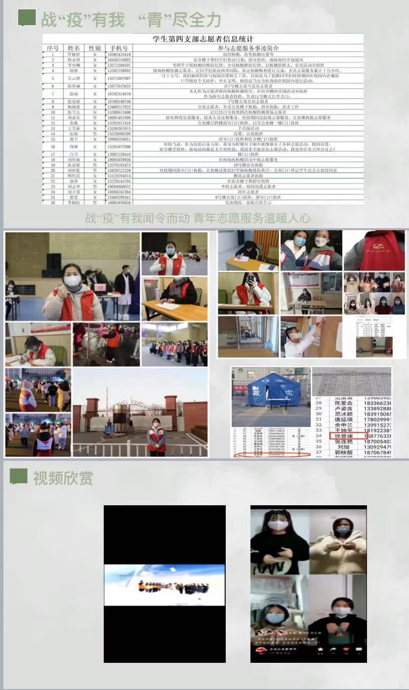 各支部的成员在疫情防控期间积极响应学院号召,争做疫情防控志愿者,在学校核酸检测点、公寓宿舍楼出入登记处等这些校园防疫站点都能看到他们的身影。即使要在核酸检测点持续站岗,也坚持在自己的岗位耐心协助学院核酸检测工作。同时,考虑到现在我们身处互联网时代,信息繁杂难辨,大众容易被舆论误导导致人心惶惶,各支部学生党员主动参与到防疫宣传中去,积极传递防疫正能量。