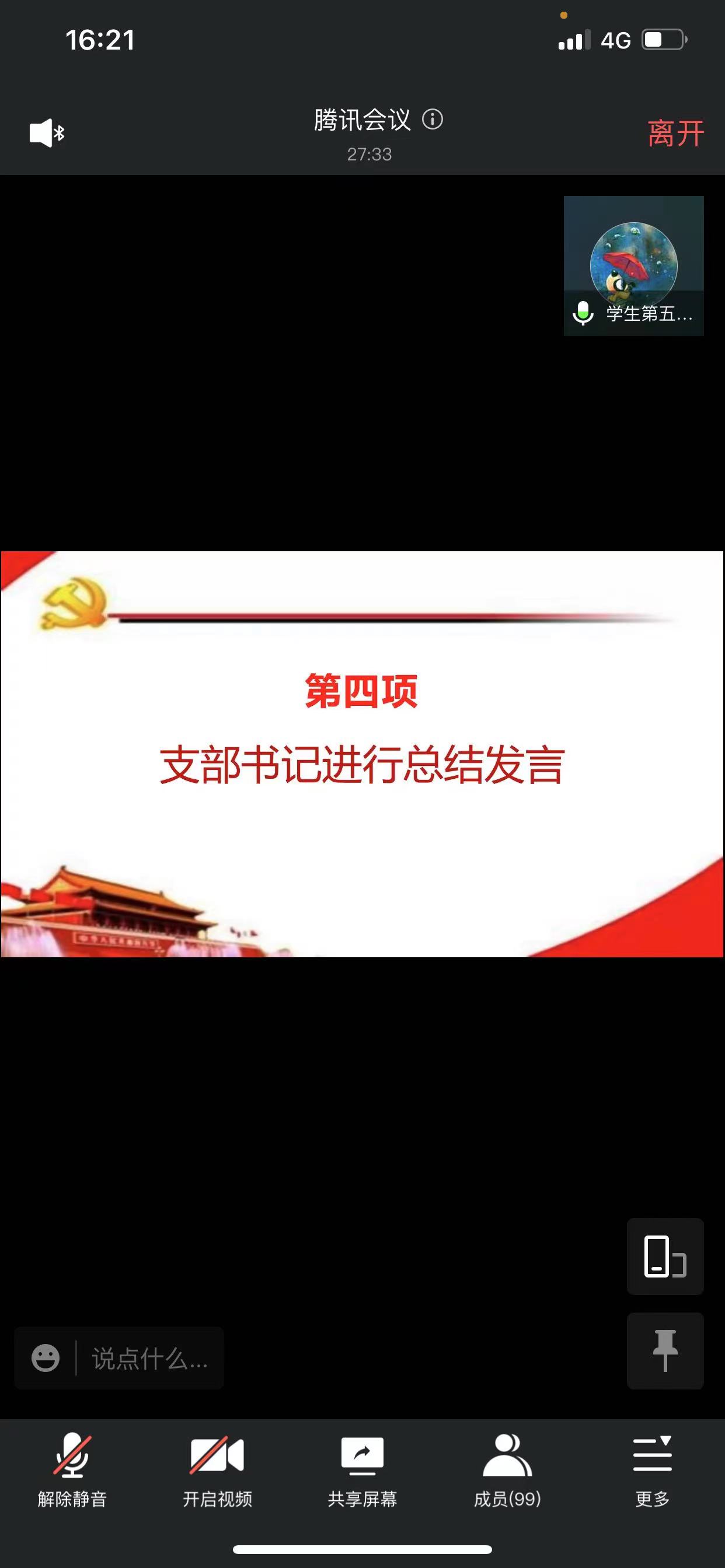 各学生党支部书记在本次线上学习会议中,就疫情期间校园生活和学生党员志愿者经历和收获进行分享,并着重关注疫情期间学生的身心健康。学生第二党支部书记杨玉春同志指出:疫情是一场没有硝烟的战争,疫情防控刻不容缓,全体学生党员都要将当前时期作为打赢疫情防疫战的关键时期,船到中流浪更急、人到半山路更陡,我们唯有不忘初心、牢记使命,以实际行动做好疫情防控工作,与全院师生共同打赢疫情防控阻击战。”