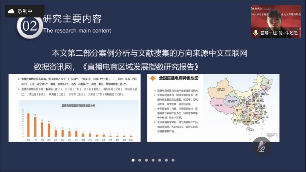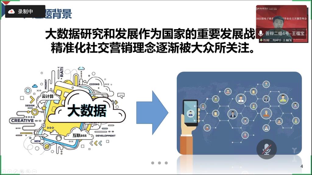 本次学生开题答辩汇报过程中,充分体现了前期电子商务专业论文指导教师认真负责工作精神、与学生沟通密切频率高、任务书内容明确具体。同学们对论文开题报告工作准备用心、PPT制作完整、语言表达流畅、结构设计合理,逻辑性较强。在答辩汇报结束后,各位答辩评委对学生们写作态度端正、选题符合应用型培养目标、研究方法得当等方面给予肯定。同时也对一些共性问题进行了现场指导,杨仕鹏教授对于学生在研究内容上的聚焦性和研究的重点进行了指导,孙文琳副院长从选题的应用型与落地性方面进行了说明和讲解、丁阳副教授对于学生选题中的概念界定与具体论文研究思路进行了指导,王艳教授对于研究的创新性及研究方法进行指导和询问,各位评委老师从专业角度在答辩中帮助学生梳理思路,指出问题为学生后期的论文写作提供了很大帮助。