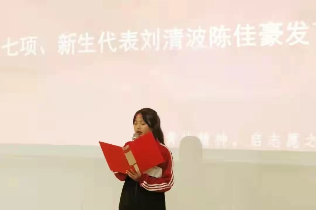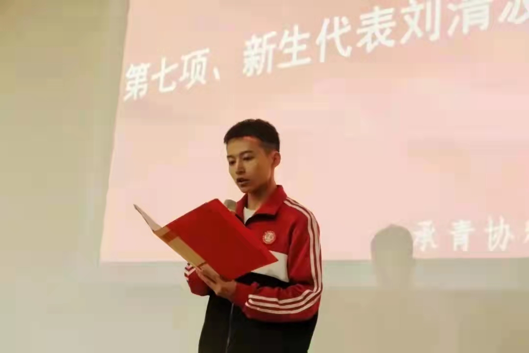 新生代表社会实践部的陈佳豪和校友服务部的刘清波也依次进行了他们的发言。