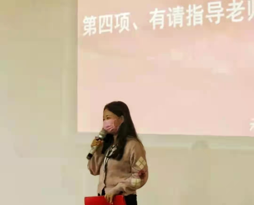 然后由指导老师寇方译老师发言,寇老师分享了她的大学心得并为大家简要的说明了今年协会的主要工作,特别强调“要学会用心去对待每一次的工作”。