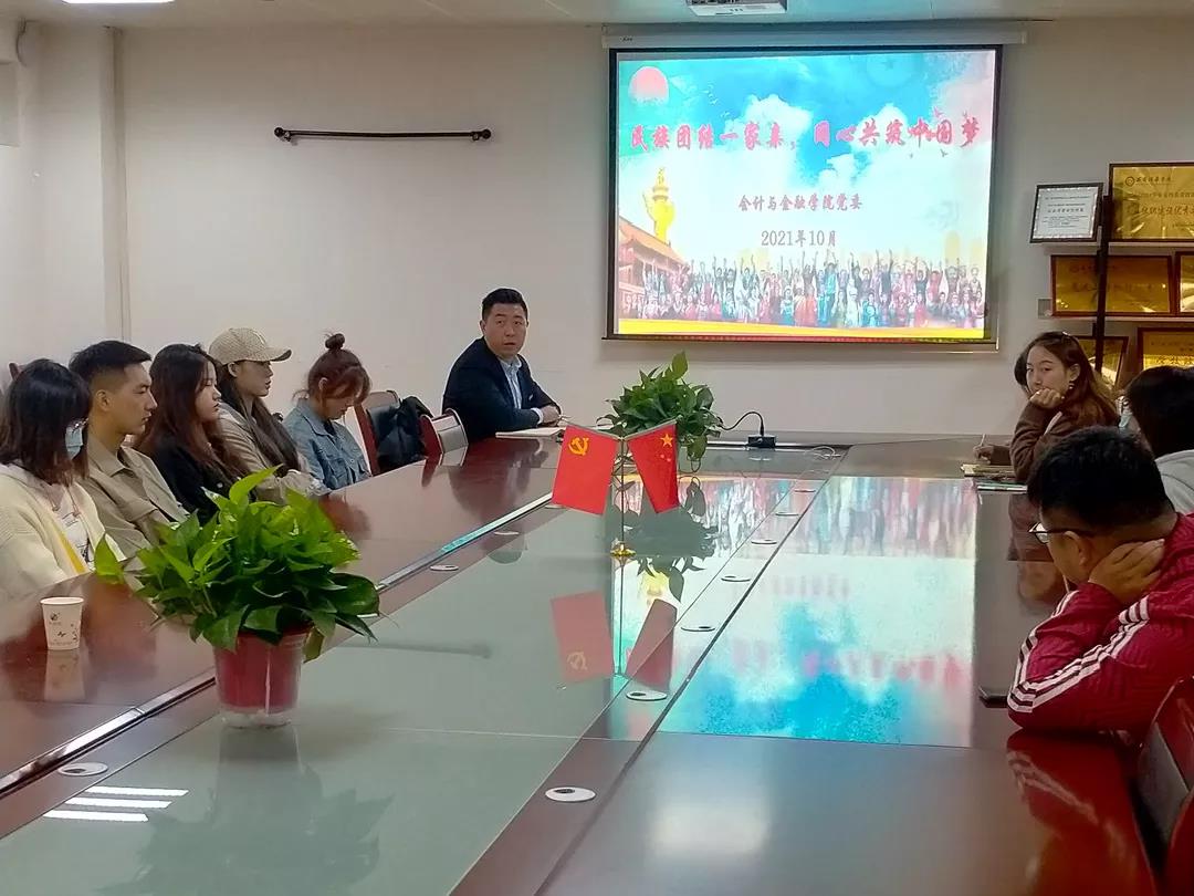 中华民族手足相亲,守望相助,相互交流,共同成长。10月9日下午,会计与金融学院党委在博远楼2115会议室以“民族团结进步月”为契机,围绕“民族团结一家亲,同心共筑中国梦”主题召开了少数民族学生座谈会。座谈会由学生干事王迪老师主持。会计与金融学院党委书记兼行政副院长史立军、党务专干胡景莲、党务行政干事刘湘辰及少数民族学生代表参加了此次座谈会。