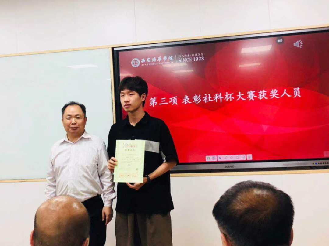 由会计与金融学院杨仕鹏院长、后勤服务中心张静远主任、环保干事全老师分别为获奖学生进行颁奖,以资鼓励。本次被表彰的赛事及学生包括:上半年获得全国高校市场营销大赛策划案三等奖的王博等同学;获得全国高校市场营销大赛策划案一等奖的安杨玲等同学;获得全国高校市场营销大赛全国复赛三等奖的王佳超等同学以及获得POCIB全国外贸从业能力大赛2020-2021赛季(春季赛)中荣获本科组团体三等奖的团队等。