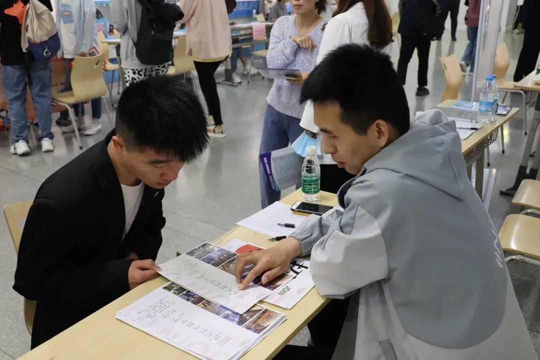 招聘会上,同学们表现出积极的求职意向,并与相关招聘人员进行交流,主动询问用人单位情况、发展前景、人才培养方式、薪资待遇等情况。招聘单位人员也耐心地为学生答疑解惑,现场氛围极其热烈。