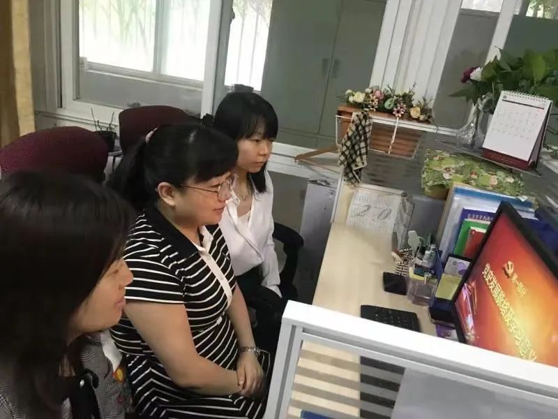 第二组是支部书记原亚丽老师、涂玉侠老师、武倩老师。他们一起进行线上党史学习,并交流心得