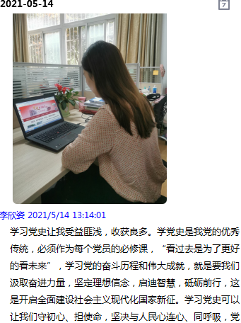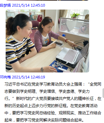 为加强样板支部建设,深入开展党史学习教育,会计与金融学院教工第二党支部以“知党史校史,爱校爱国,立德树人”为主题进行学习,并于支部群里发表感想,分组交流学习。