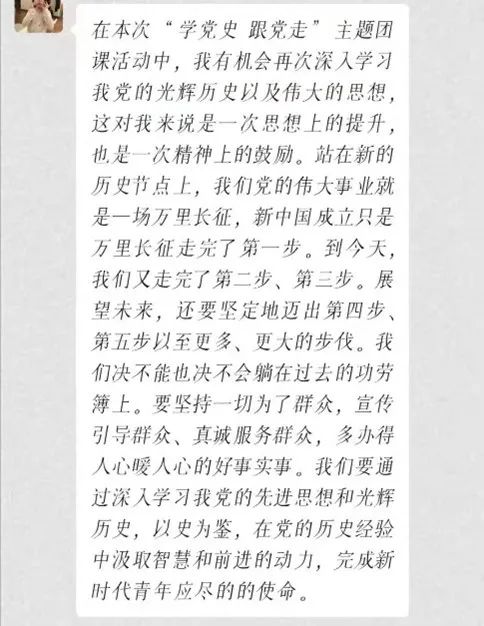 通过此次云团课,我院同学们明白了身为新时代新青年应该坚定的理想信念,担当起党和人民赋予的历史重任,在实现中国梦的实践中放飞青春梦想,在为人民利益的不懈奋斗中书写人生华章!