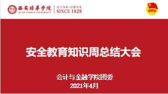 为了增强全民国家安全意识,维护国家安全而设立的节日。2015年7月1日,全国人大常委会通过的《中华人民共和国国家安全法》第十四条规定,每年4月15日为全民国家安全教育日。会计与金融学院团委于2021年4月19日12:20在2115开展“国家安全,关系你我”主题团日活动。本次活动由王若冰主持。莅临嘉宾有:我院团委书记唐璠,团委学生兼职副书记全紫薇。