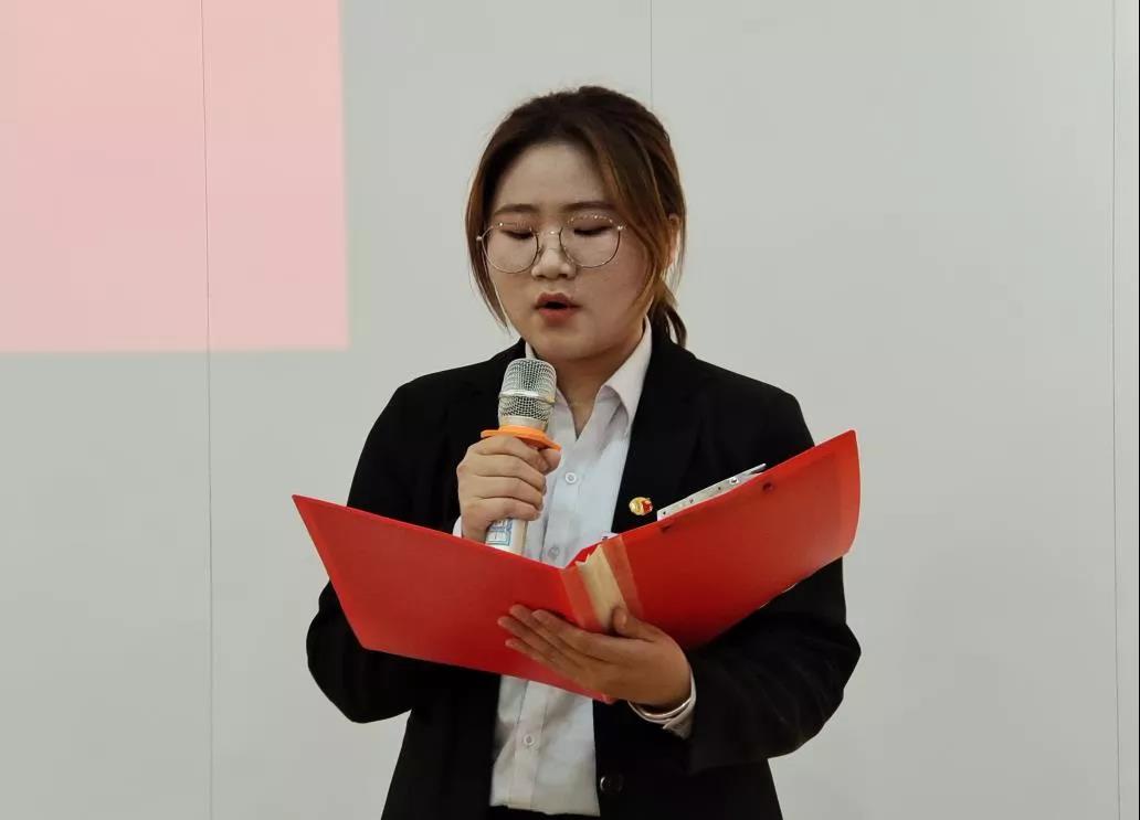 特在此进行宣誓,请全体起立,请大家举起右拳。