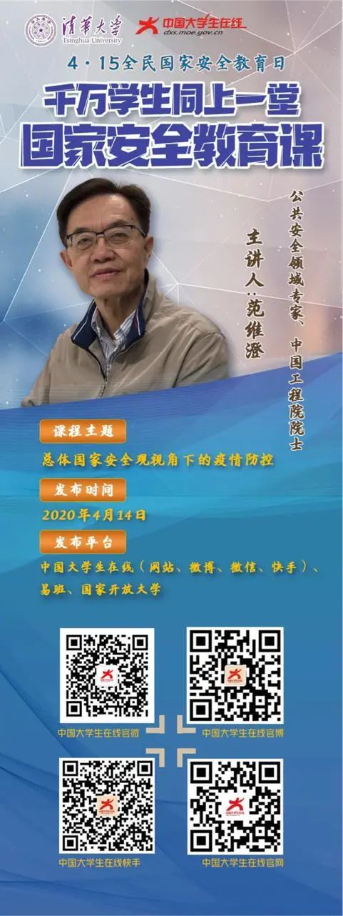 千万学生同上一堂国家安全教育课!公共安全领域专家、中国工程院院士范维澄为全国大学生讲授《总体国家安全观视角下的疫情防控》。大家可以自行学习。