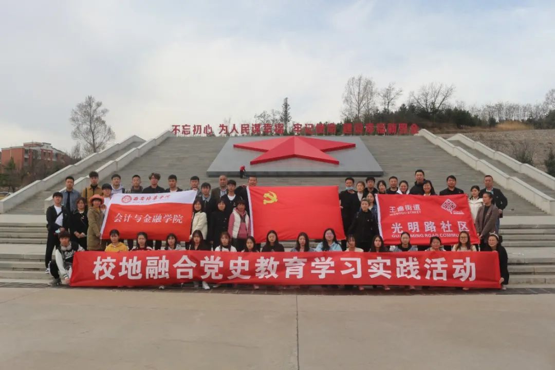 为庆祝建党100周年,加强“四史”学习教育,扎实推进“两学一做”学习教育常态化制度化工作,积极创新基层党建工作载体,牢固树立校地融合理念,促进校地开展宽领域深层次合作,不断拓展校地合作广度和深度,2021年3月24日西安培华学院会计与金融学院党委、团委联合王曲街道光明路社区党支部,组织我院师生党员、团学干部、社区党员外出学习。参与本次学习的人员有会计与金融学院党务专干胡景莲、团委书记唐璠、学生支部书记代表、王曲街道光明路社区党支部书记孙利华、副书记卜格格、社区工作人员和35名学生。本次活动前往的地点是照金革命根据地纪念馆和薛家寨革命旧址。