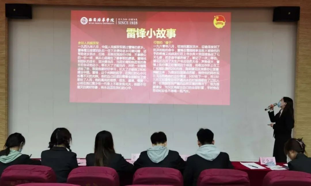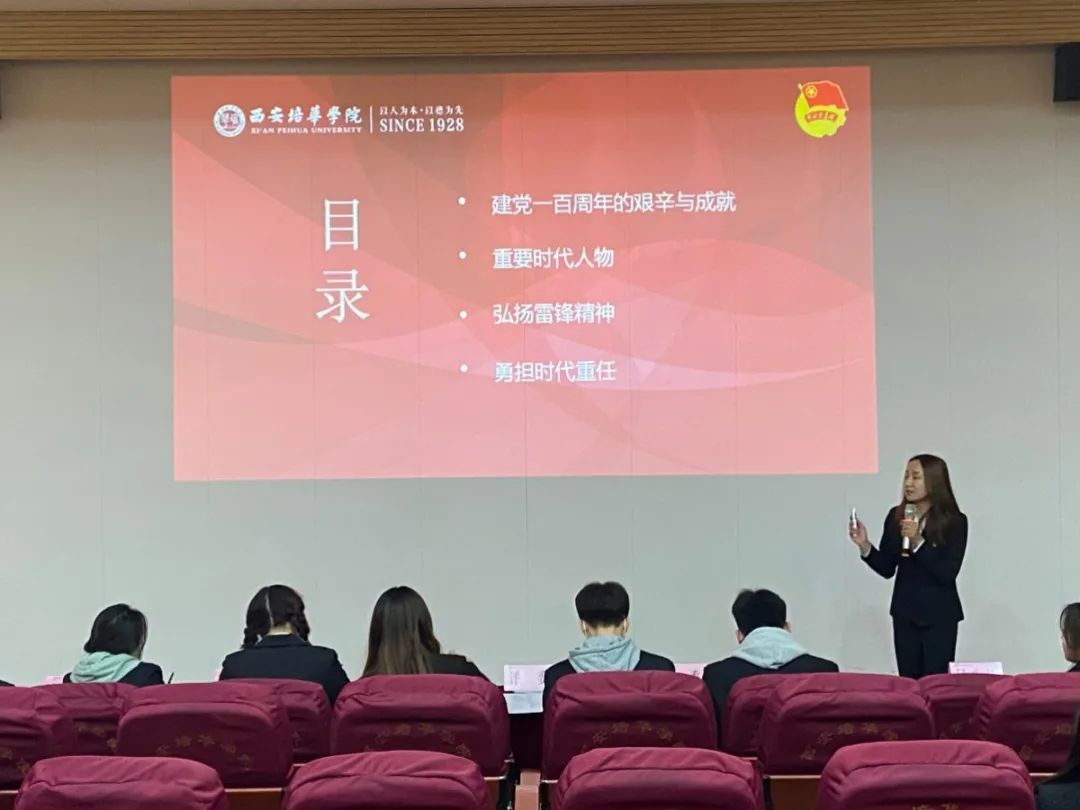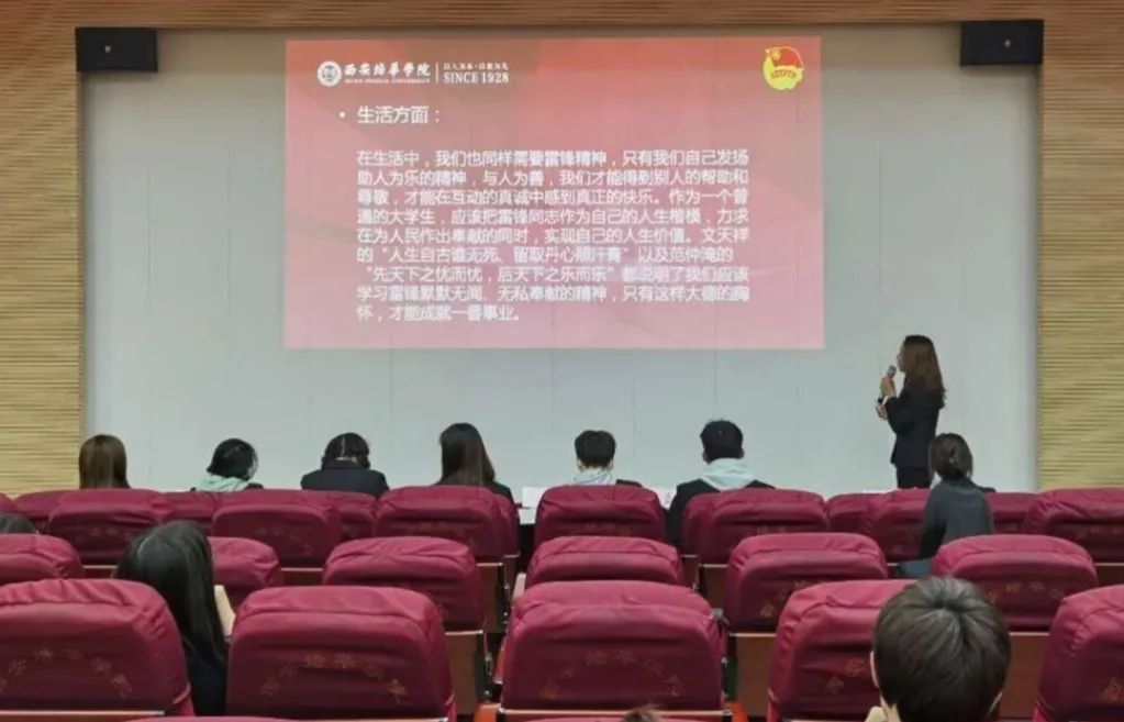 她说到:很感谢同学在这特殊的日子里向我们展示了一堂堂精彩的团课,在活动中,看到了你们将雷锋精神真正的刻进了心中,并用实际展示出来,一个个深刻的事例勾起了大家对雷锋的怀念,让雷锋精神再一次在每个人心中点燃,也感谢你们带大家重温了我们党的百年风雨路,从学党史中汲取营养,从感党恩中汲取力量,从跟党走中坚定步伐,从增党光中创造佳绩。人的生命是有限的,但党的传承和雷锋精神是无限的,愿所有人在雷锋精神和时代精神的感召下,积极向上向善,持之以恒,以实际行动书写新时代的雷锋故事,不忘初心,砥砺前行,刻苦学习做新时代的奋斗者。