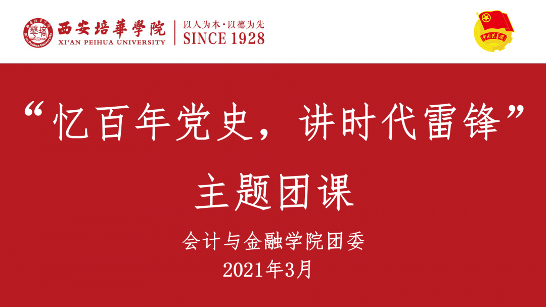 为了加强我院雷锋精神的教育,积极响应党的号召,将学党史与学雷锋高度结合,提高我院学生爱国意识及思想认识,让党的历史与雷锋精神在校园里散发出崭新的光芒,会计与金融学院团委于2021年3月19日12:20在博远楼J201教室、J202教室举办以“忆百年党史,讲时代雷锋”为主题的讲团课活动,参与本次会议的有我院团委学生兼职副书记全紫薇、科技实践委员肖晨睿、纪律委员王玥涵、宣传委员郝欣茹、心理委员范力、以及2020级、2019级、2018级团支书。