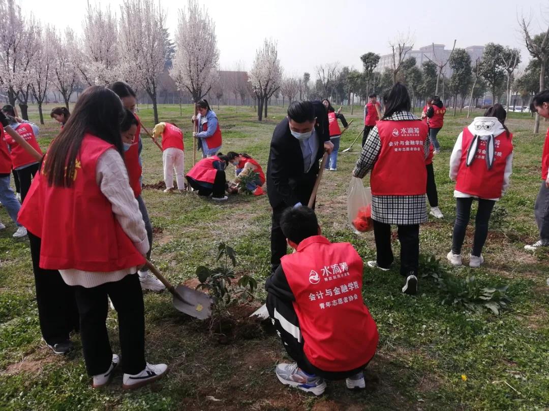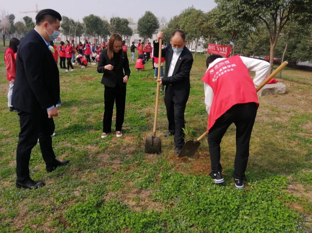 3月12日14:00,由西安培华学院会计与金融学院青年志愿者协会举办的“植一棵树,绿一方土”——植树节活动在西安培华学院北门前草地上顺利举行。西安培华学院会计与金融学院青年志愿者协会全体成员邀请党委书记兼行政副院长史立军,院长助理韩建军老师,团委书记唐璠老师以及学生干事王迪老师参加活动,为校园增添绿意生机。