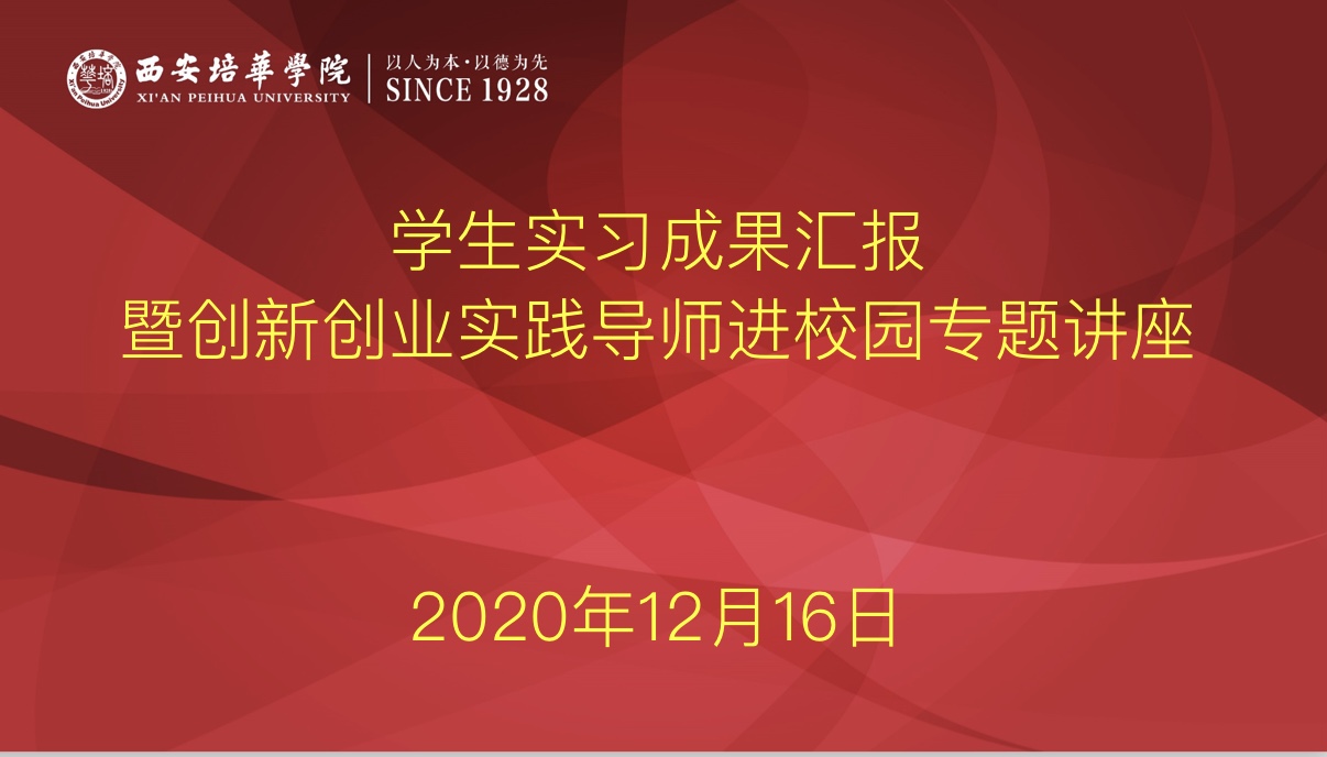 纷纷冬雪蕴生机,实习收获次第来。2020年12月16日下午西安培华学院的博远楼J202教室,迎来了会计与金融学院学生实习成果汇报暨创新创业实践导师进校园专题讲座。