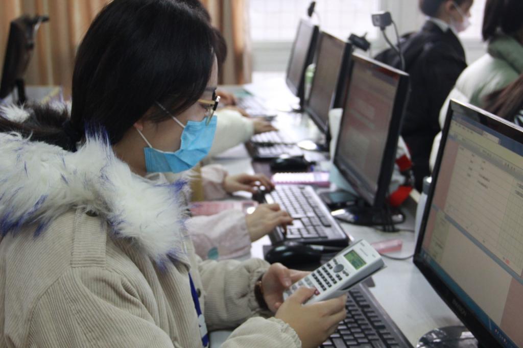 本次财税竞赛为4人一组小组赛,各组岗位由组内自行商定。比赛内容包括原始凭证的审核与填制;记账凭证的编制与审核;会计凭证汇总;账簿登记;对账与结账;会计报表编制;纳税申报表编制。赛场内,参赛选手有的冥思苦想,有的奋笔疾书,都在聚精会神认真作答。