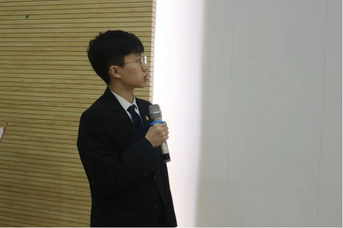 唐璠老师讲到:“作为当代青年大学生,应该铭记自己所肩负的责任,要用知识去武装和强化自己,使自己成为当代的“三有青年”,有理想、有抱负、有志愿的青年,希望同学们在自己的大学生活里铭记自己的初心,努力学习成为一个有志且德才兼备的新时代青年!”
