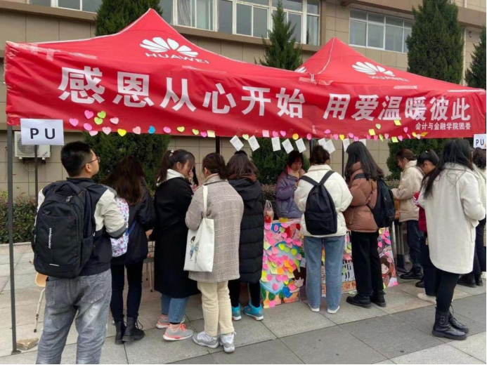 会计与金融学院团委于11月26日开展了以“感恩从心开始,用爱温暖彼此”为主题的活动。不仅用手势舞和朗诵等活动来表达我们的感恩之情,更有“感恩墙”、给培华校园内默默付出的工作人员准备手工艺品等活动丰富师生的精神文化生活,也对那些冲在前线的医务工作者予以感恩之心。