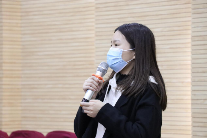 李蒙老师隆重介绍了与会的学校领导和学院管理人员。鼓励学生积极参与各专业的学科竞赛以及教师科研项目,来推动我院“新文科”建设。针对本次期中教学检查学生座谈会的内容,希望大家真实反映存在的问题以及提出相关中肯的建议。