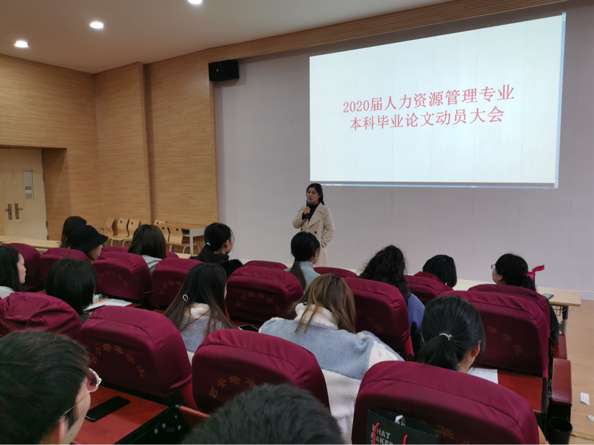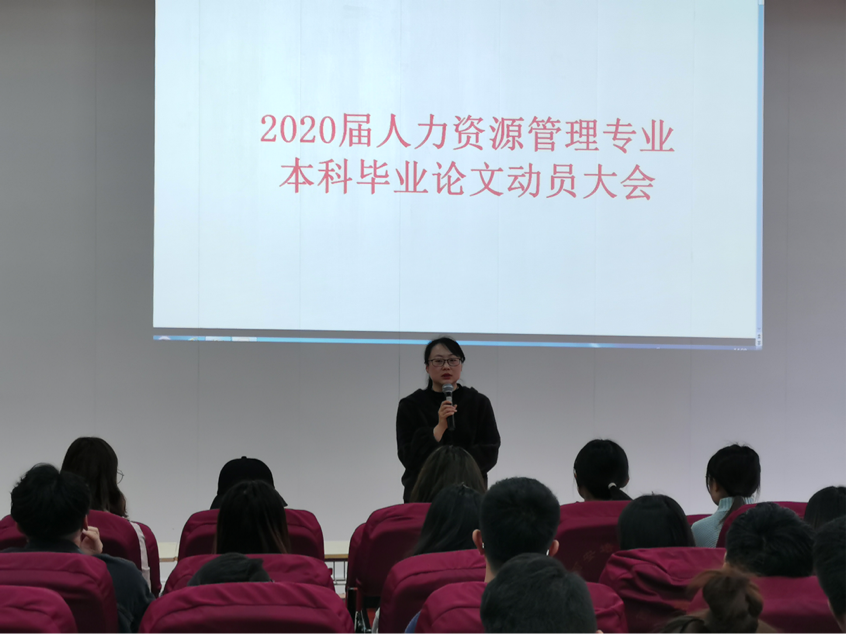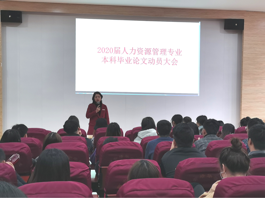11月12日下午,人力资源管理专业16级本科毕业论文动员大会于博远楼J201教室举行,人力资源管理专业老师王芳老师、江凤香老师、任静老师以及张晓明老师出席了本次大会,此次动员大会由任静老师主持。