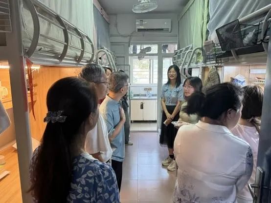 随后,刘锋书记和赵选民院长一同走访了6号宿舍,慰问同学们。每到一个宿舍,书记和院长都与同学们亲切交谈,询问他们的生活状况,关心他们的学习进度,并送上中秋佳节的祝福。同学们纷纷表示,在这个特殊的日子里,能收到书记和院长的慰问,感到非常温暖和感动。