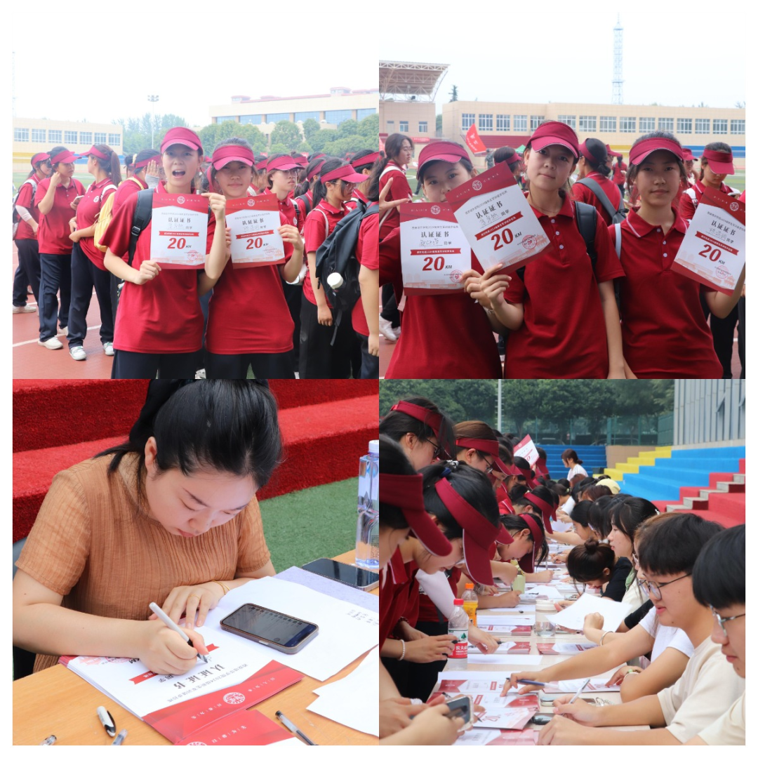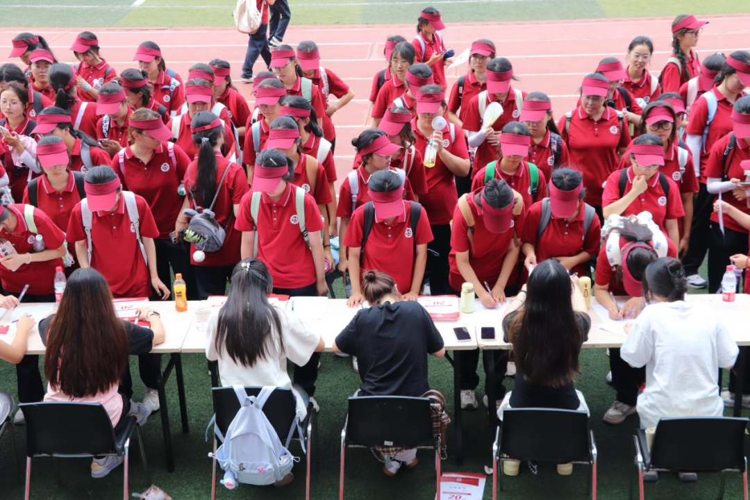 随后,拉练学生统一在大操场集合。学校为每一位同学颁发了西安培华学院 2024 级新生军训徒步拉练认证证书,这是对他们勇敢前行、坚持不懈的最高赞誉。证书虽轻,却承载着同学们这段刻骨铭心的经历和茁壮成长的记忆。那一本本红色的证书,如同燃烧的火焰,象征着同学们的青春热血与奋斗精神。