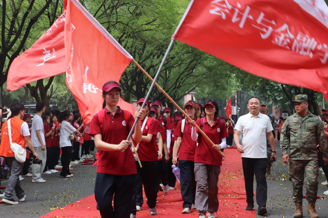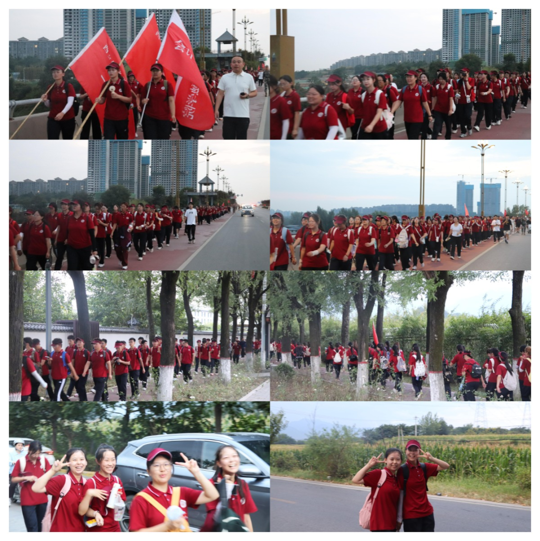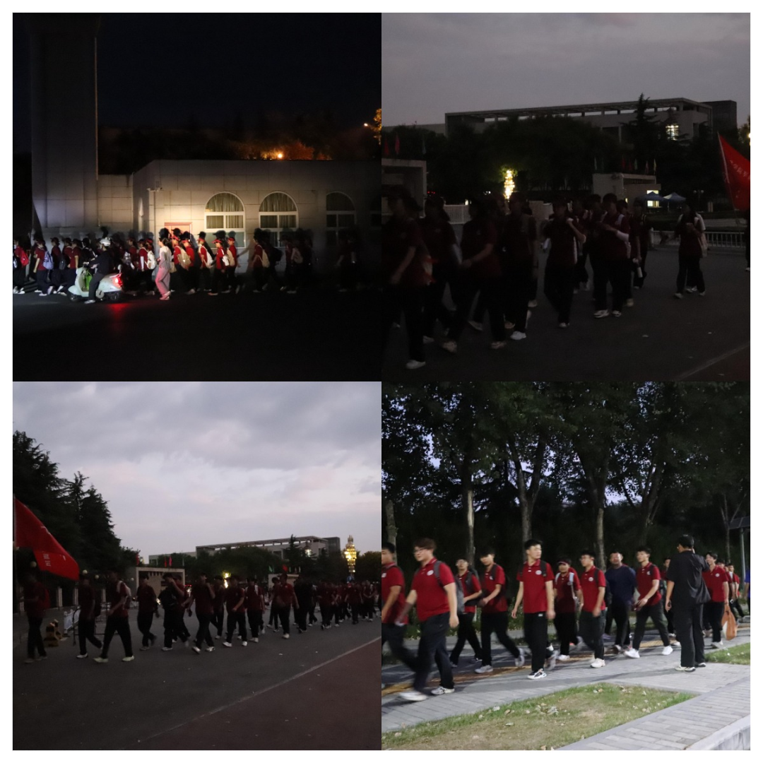 5 点 30 分,我院所在营连集合完毕,准时从学校南门出发,开启长达 20 公里的徒步行军。一路上,同学们听从指挥,口号声震耳欲聋。他们相互鼓励,相互扶持,携手共进。