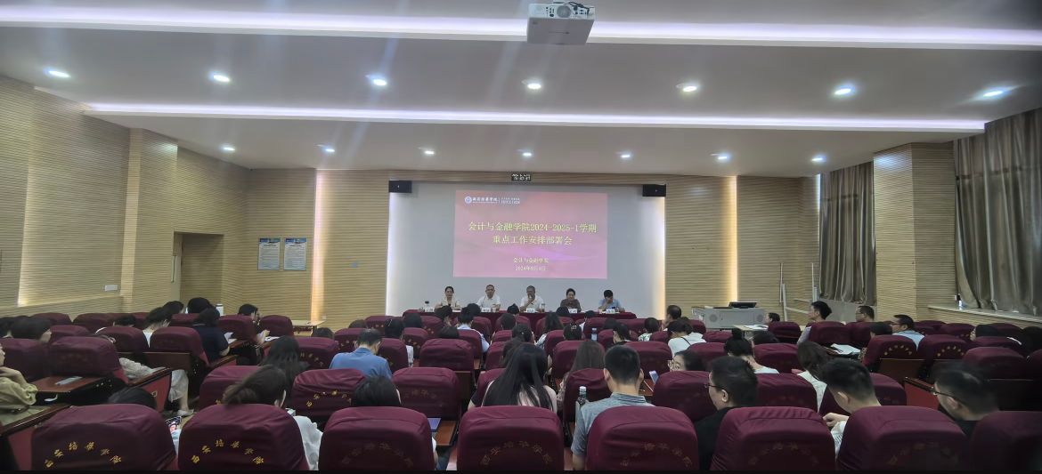 2024年9月4日星期三下午14:30,会计与金融学院在博远楼J201室召开2024-2025-1学期重点工作安排部署会。学院领导班子全体成员、各系中心正副主任、综合办公室主任、学院全体教师参加了会议,会议由学院党委书记兼行政副院长刘斌主持。