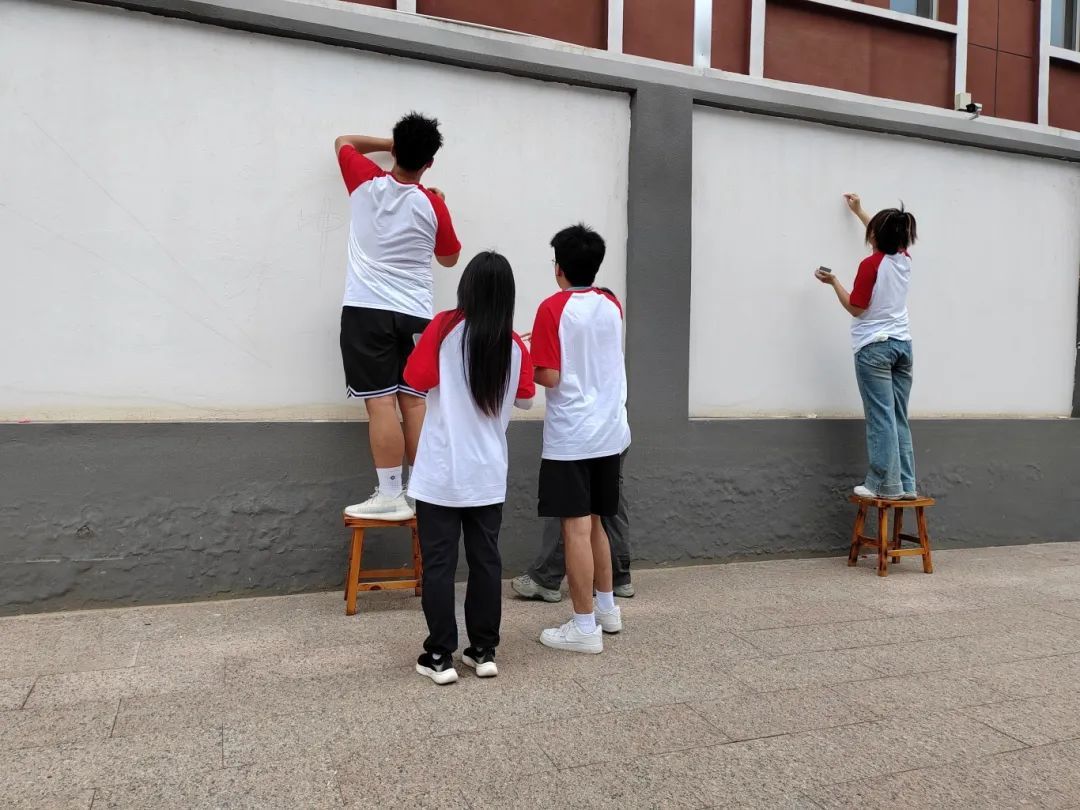 队员们以乡村振兴、传统文化、生态环保等为主题,精心构思,巧妙设计,用手中的画笔、颜料和满满的创意表达着他们对乡村建设理念的思考和见解。他们或蹲或站,或挥笔勾勒,或细心填涂,每一笔每一划都倾注着他们对乡村的热爱和对美的追求,一面面原本色调单一的墙壁逐渐成为了艺术的展板,为乡村文化建设新增了一道亮丽风景线。