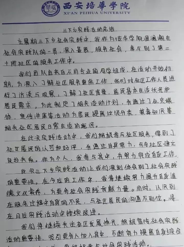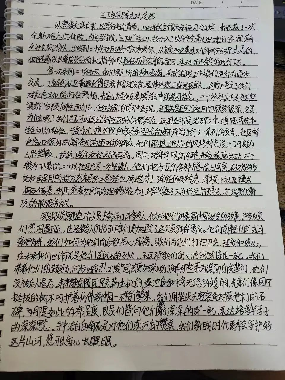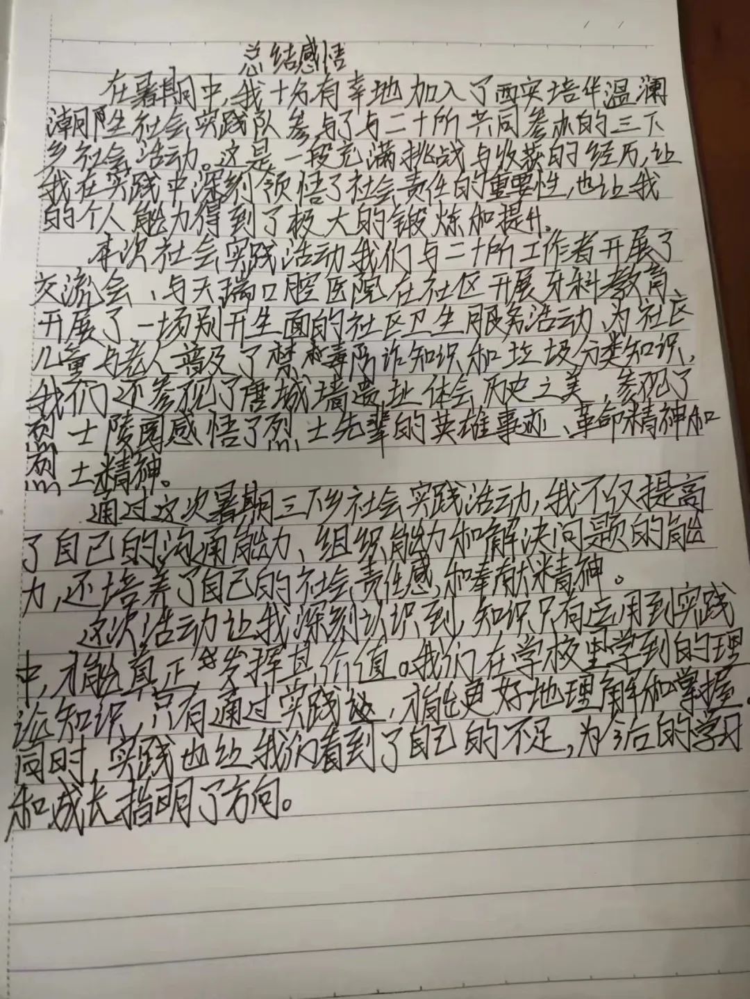“挥洒汗水,服务社区”三下乡活动对于温澜潮生社会实践队的队员意义非凡。它宛如一座璀璨的灯塔,照亮了队员们前行的道路,为他们的人生增添了一抹绚丽的色彩。在这段难忘的经历中,每个实践队队员都因为各自不同的所见所闻、所做所感,有了自己发人深省的感悟。