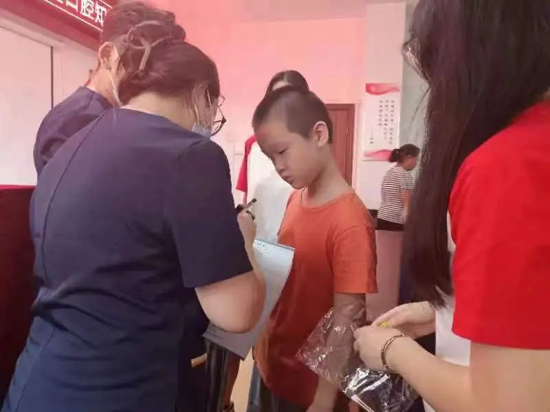 讲座结束后,温澜潮生社会实践队的队员们帮忙派发医生给每个孩子精心准备的小礼品,提醒孩子们在平时都要学会并养成每天正确刷牙,保护牙齿的良好习惯做好口腔卫生防护。最后,温澜潮生社会实践队帮助天瑞口腔医院为孩子们进行了全面细致的口腔检查,为孩子们的口腔健康保驾护航。