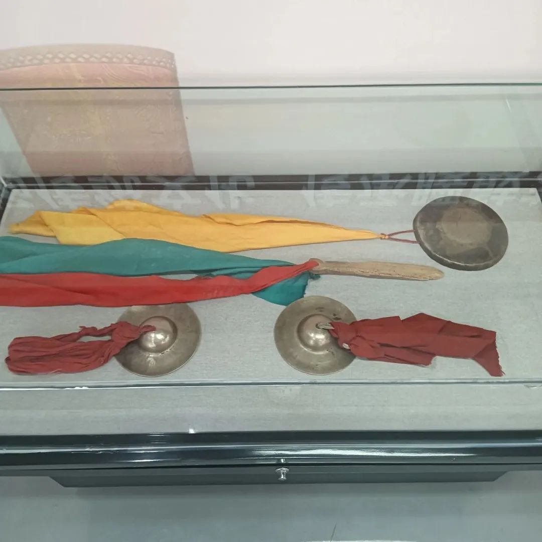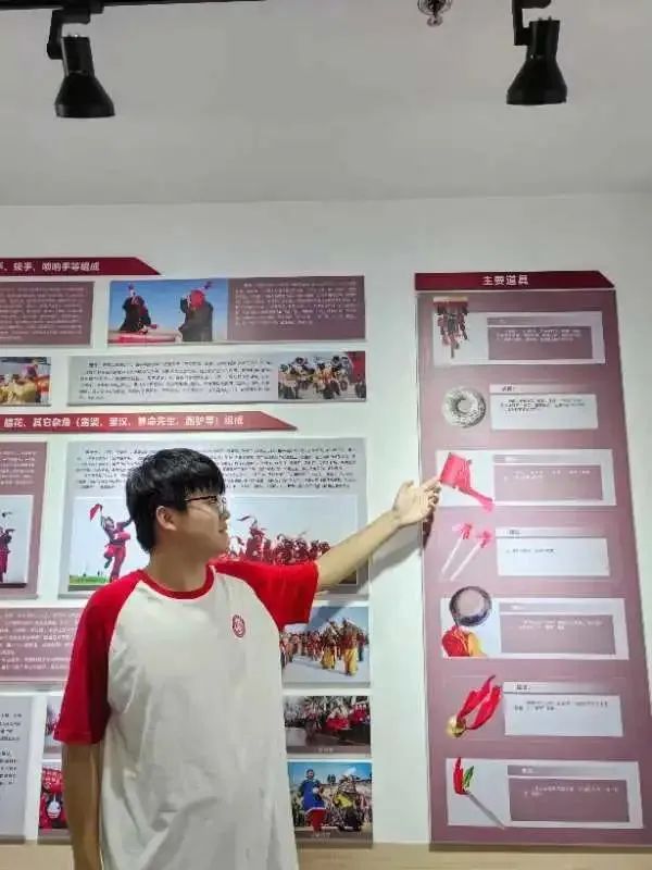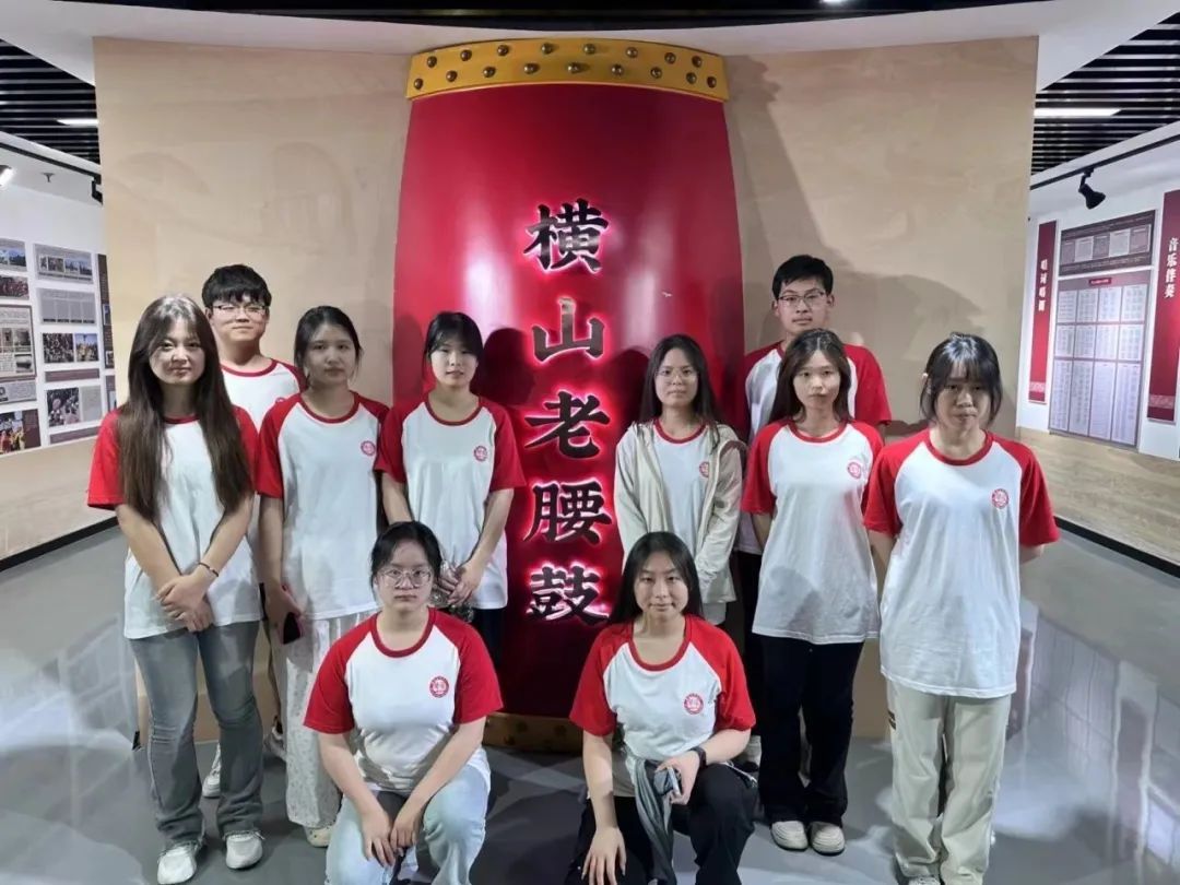 从传统的羊皮鼓到现代改良的合成材料鼓,仿佛在诉说着岁月的故事。沿着展厅的通道前行,同学们看到了一幅幅生动的图片和详实的文字介绍,详细讲述了腰鼓的起源、发展以及在不同历史时期所扮演的角色。馆内陈列许多珍贵的历史文物,如古代腰鼓艺人使用过的鼓槌、服饰以及乐谱等。
