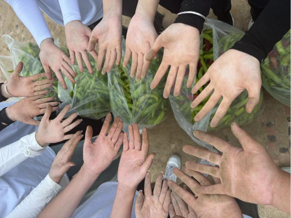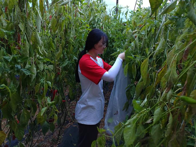 队员们进行了明确的分工并且相互协同合作,即便菜棚里蚊虫肆虐,也丝毫没有让他们停下手中的劳作。他们毫不畏惧蚊虫的侵袭,队员们充满了干劲,没过多久就采摘了辣椒,极大地减轻了菜农的采摘负担。他们尽情享受着劳动带来的快乐,深深体会着收获带来的欣喜,每个人的脸上都绽放着灿烂的笑容。