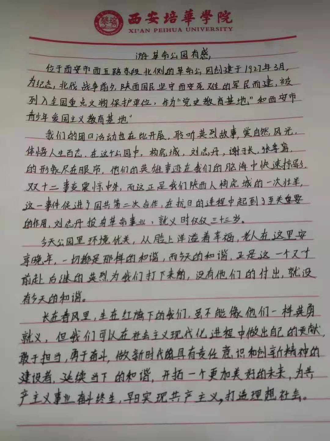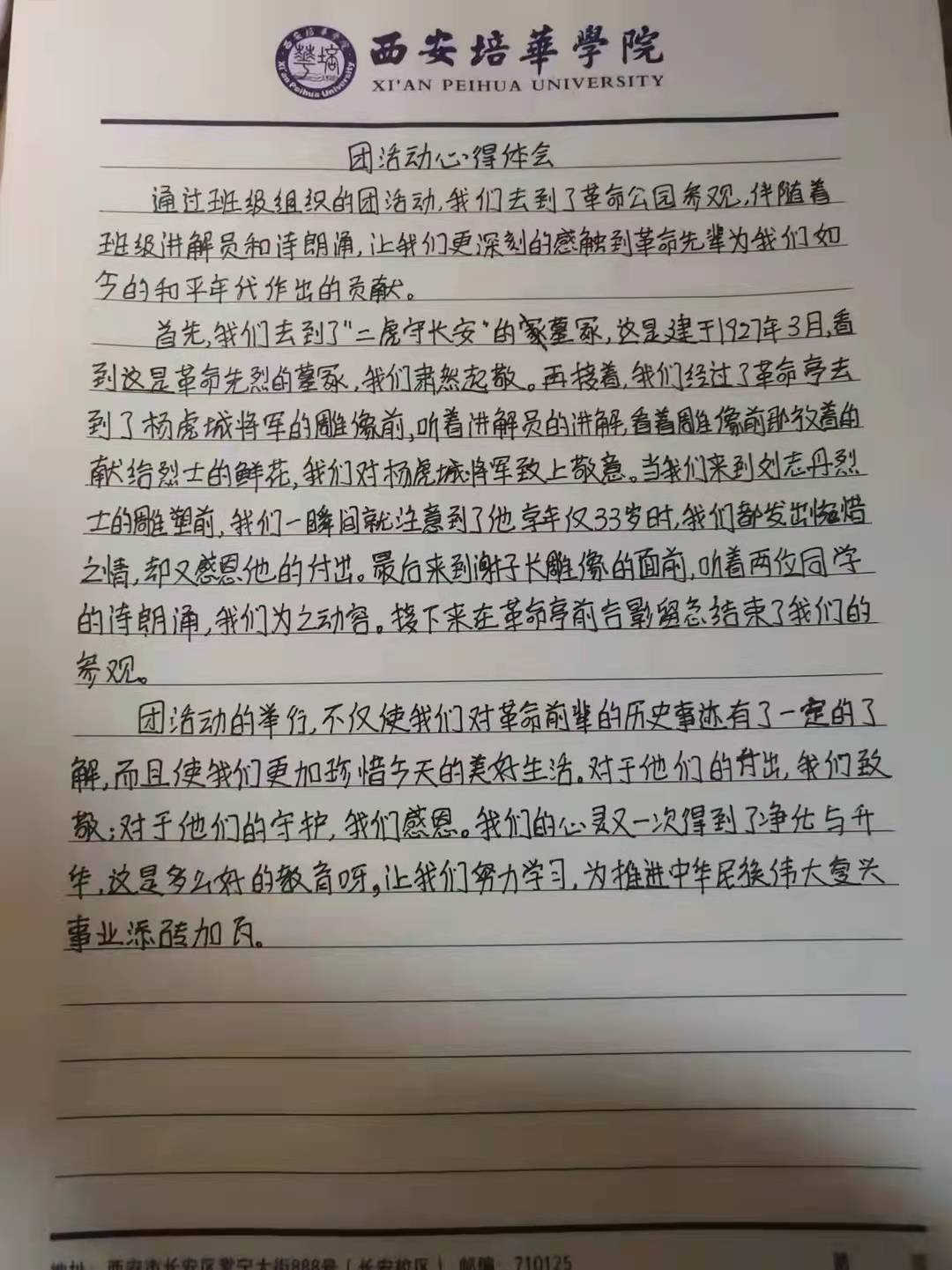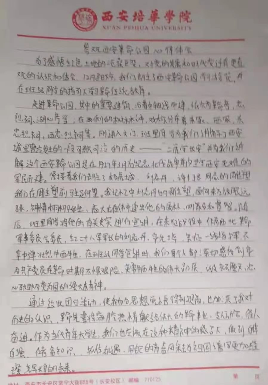 通过本次主题团日活动,同学们学习了西安历史上的革命故事,体会到了伟大的革命精神。在新的大环境下,我们要意识到作为当代新青年的责任,肩负起国家的未来,努力学习科学知识,提升自我、建设祖国,为实现中华民族的伟大复兴而奋斗。