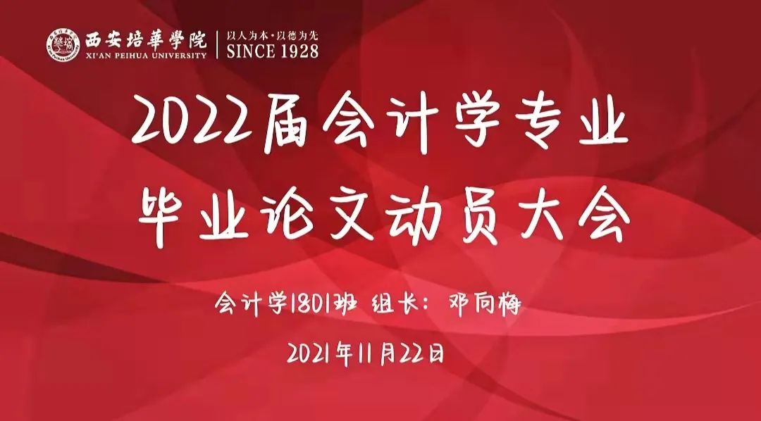 为确保会计学系毕业论文工作的顺利进行,保证并提高本科毕业生的毕业论文质量,根据《西安培华学院关于2022届本科毕业论文(设计)工作的安排通知》(培华教函〔2021〕84号)文件精神,按照《西安培华学院本科毕业论文(设计)工作管理办法》(修订稿)相关规定,以及《会计与金融学院2022届本科毕业论文工作安排》等文件要求,会计学系就2022届论文工作召开动员、安排、见面等系列大会。