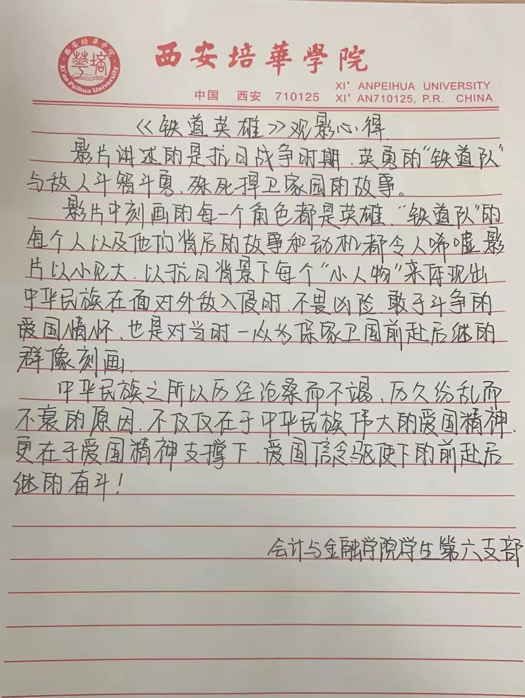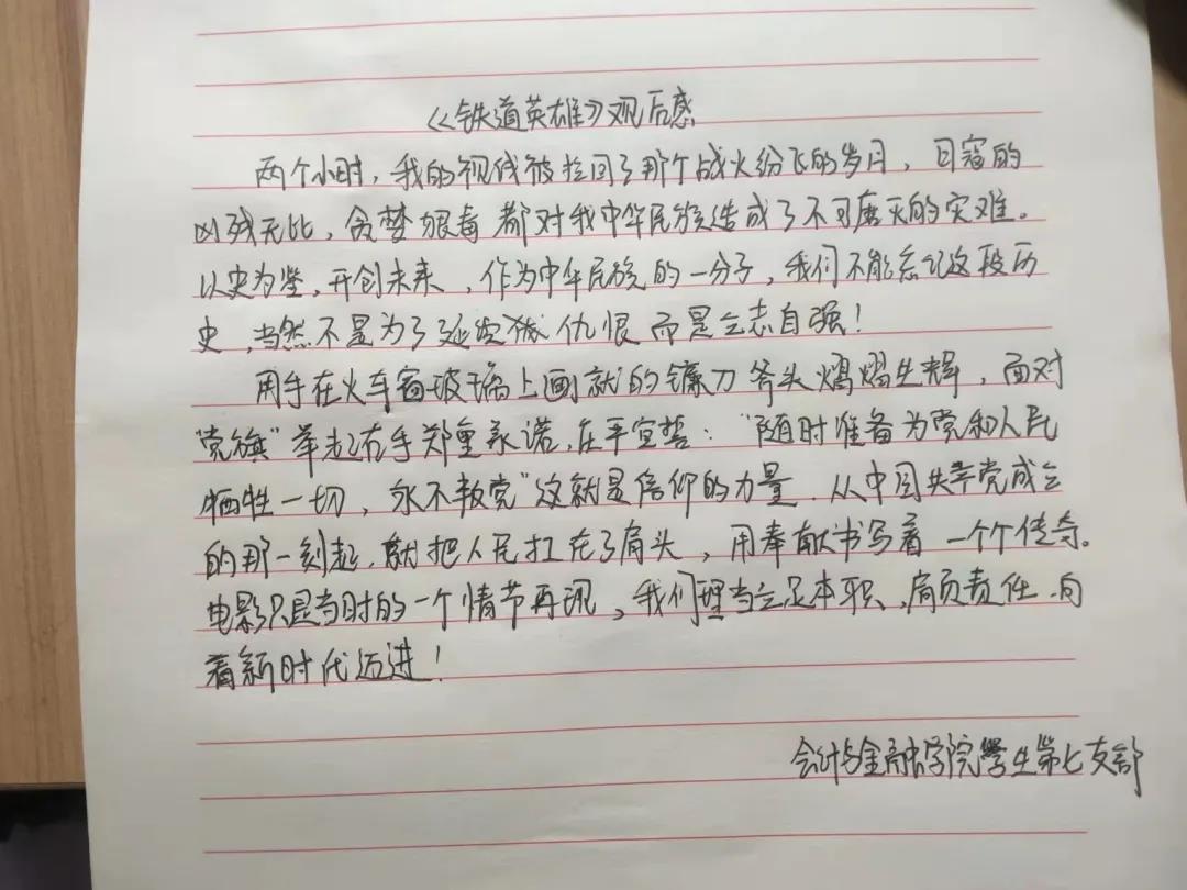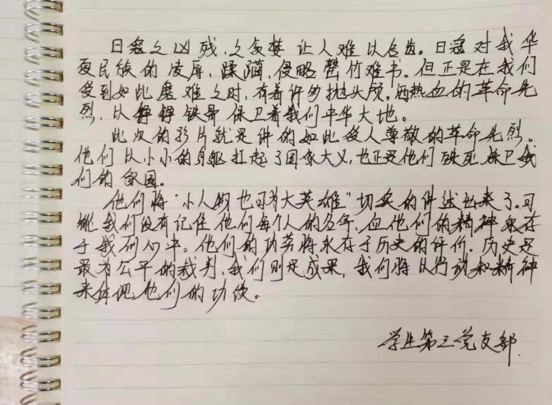 学生各支部成员都被影片中的老辈英雄为国家为民族而战的大无畏精神而感到深深折服,在观影结束后写下了自己的观影心得。