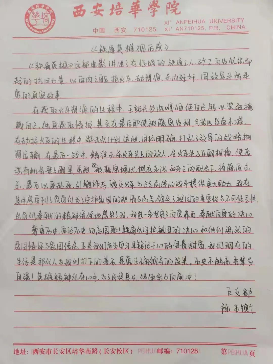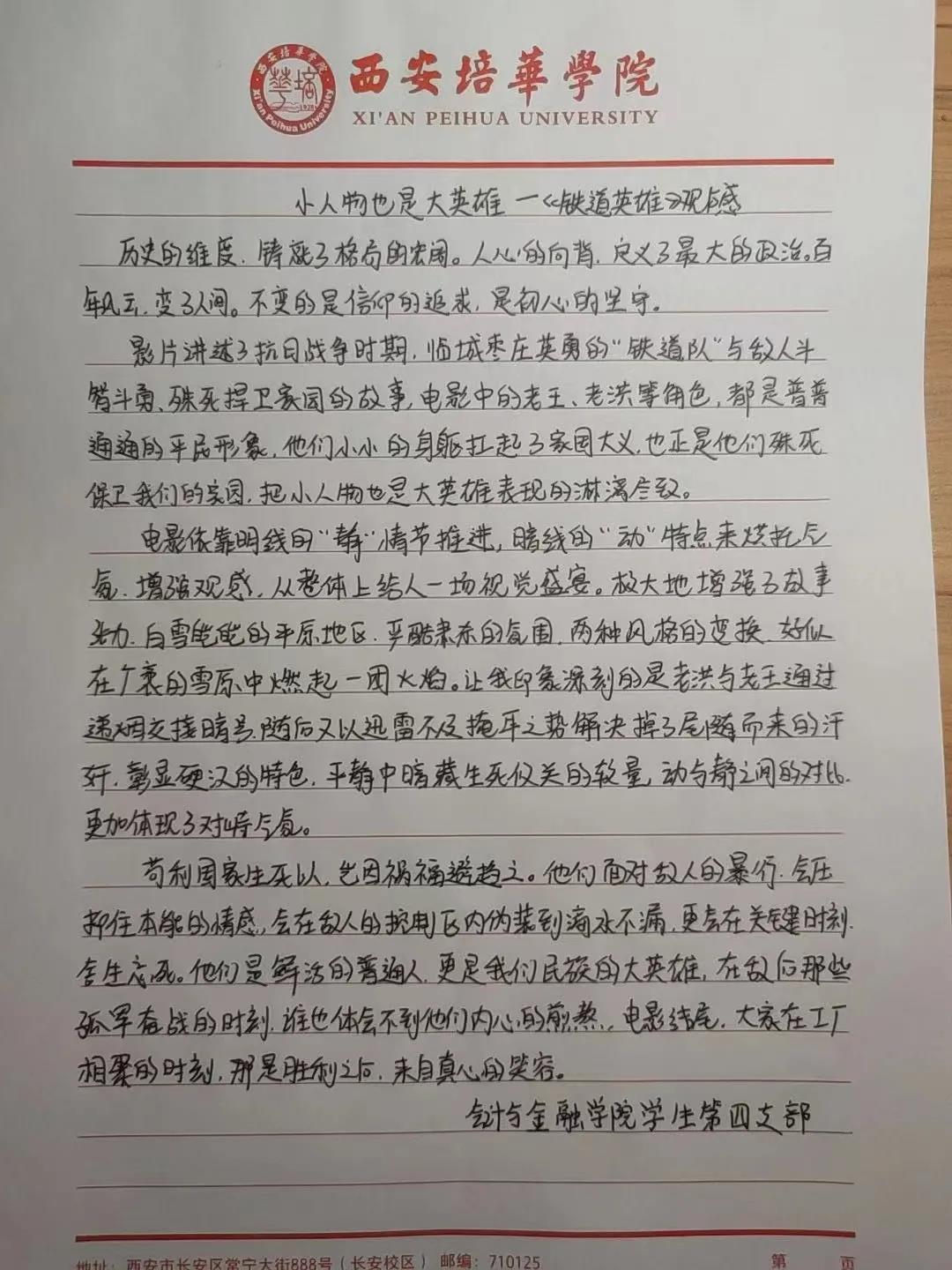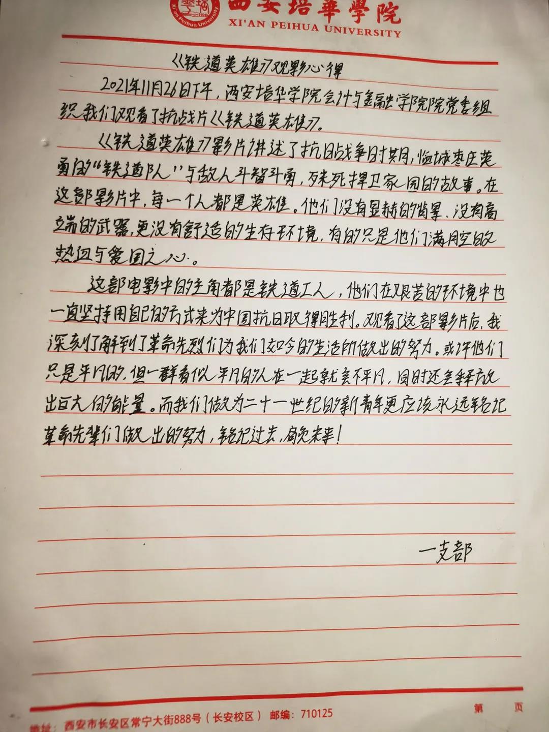 学生各支部成员都被影片中的老辈英雄为国家为民族而战的大无畏精神而感到深深折服,在观影结束后写下了自己的观影心得。