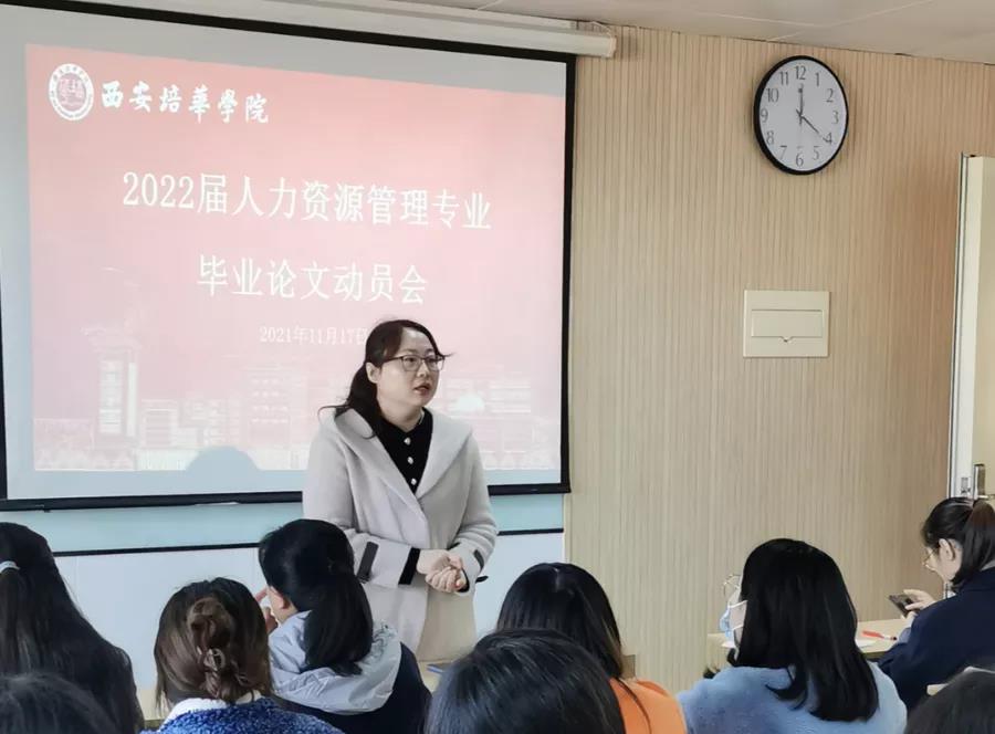 2021年11月17日12:10,会计与金融学院“人力资源管理专业2022届毕业论文动员大会”在博远楼2316教室召开。本次动员大会由人力资源管理专业浮永梅老师主持,人力资源管理专业全体教师,2022届人力资源专业全体毕业生参加了本次会议。