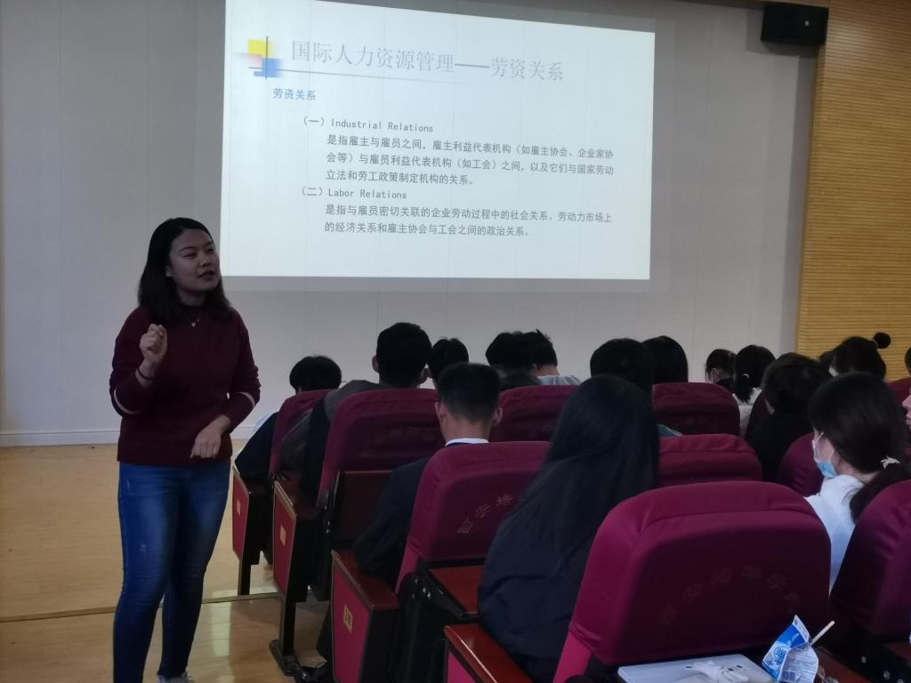 在学院大力支持下,在11月23日下午2点,在J201教室,经济系邀请了西安外国语大学国际商务系副主任崔杰博士,面向2019级国际经济与贸易专业本科生以及专科生,开展了主题为“跨国企业中的人力资源管理”的专题报告,该讲座为了帮助同学们充分了解专业发展与就业新动态,规划学业生涯与发展方向,增进专业认同感与荣誉感。