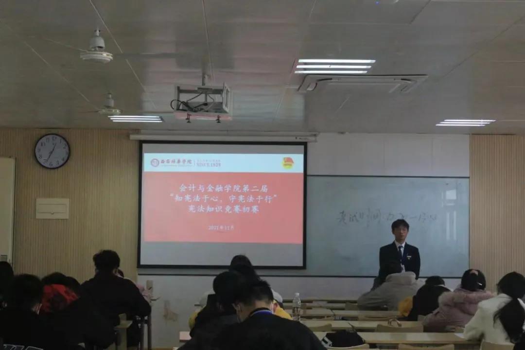 九鼎重器,百炼乃成。列宁说:“宪法,就是一张写着人民权利的纸。”宪法托起中华民族伟大复兴的中国梦,为弘扬法治精神,厚植爱国主义情怀,会计与金融学院团委于2021年11月19日在博远楼2618 ,2619教室举办宪法知识竞赛。