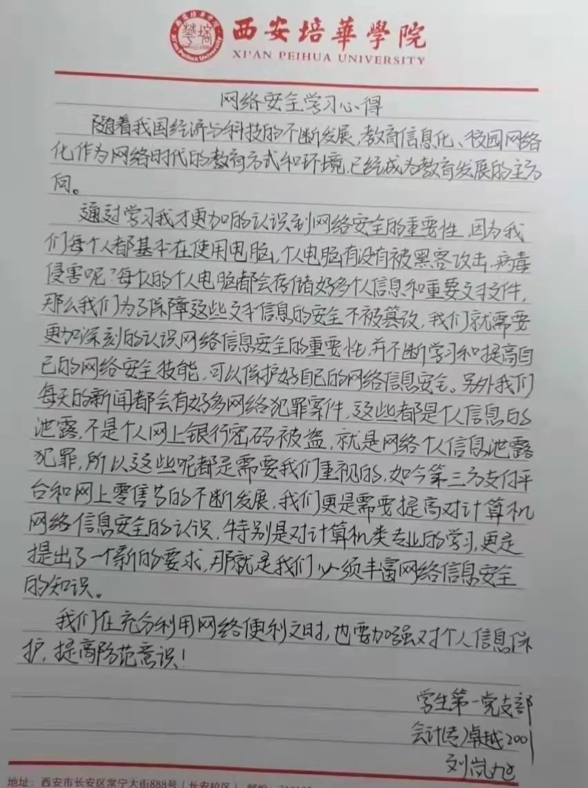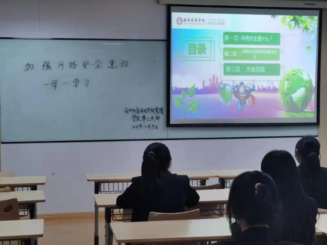 习近平总书记曾关于网络强国发表重要论述:“没有网络安全就没有国家安全,就没有经济社会稳定运行广大人民群众利益也难以得到保障。”为深入落实习近平总书记关于网络强国的重要指导思想,大力开展网络安全宣传教育活动,提升网络安全素养,营造安全健康文明的网络环境。2021年10月18至10月20日西安培华学院会计与金融学院党委各学生党支部在博远楼依次开展了网络安全主题宣传活动。